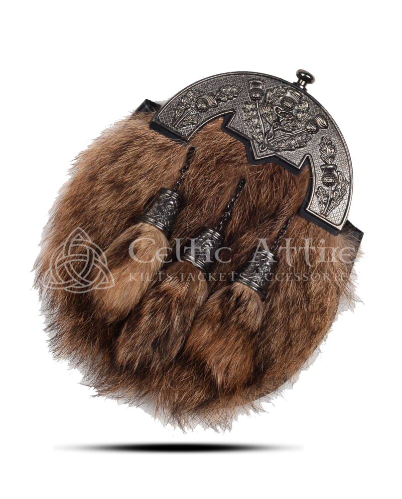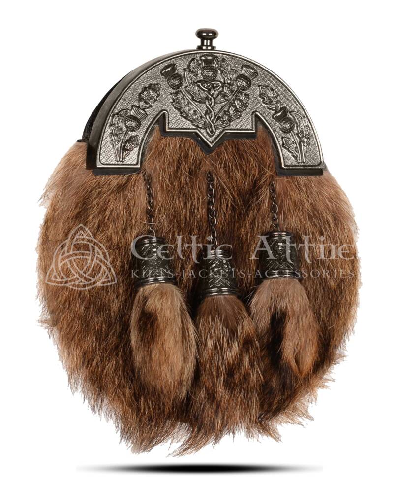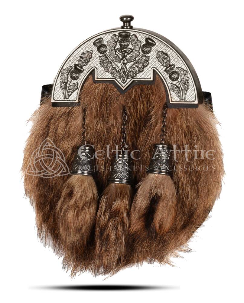 Brown Seal Fur Full Dress Sporran Nickle Brushed Thistle Cantle