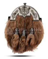 The Nickle Brushed Coyote Fur Sporran is a striking accessory that enhances any formal Highland outfit. Made from genuine coyote fur, this sporran showcases a beautifully crafted nickel-brushed thistle cantle, symbolizing Scotland’s rich heritage. The unique texture and warm tones of the coyote fur create a luxurious appearance, perfect for weddings, Highland games, and other ceremonial occasions. Designed for both style and practicality, this sporran offers ample storage space for your essentials.