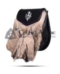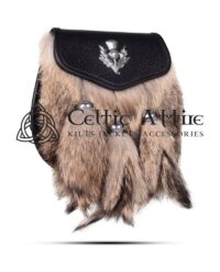 Elevate your Scottish attire with the Real Leather Scottish Semi Dress Thistle Featured Coyote Sporran, a perfect blend of elegance and tradition. Crafted from luxurious coyote fur, this sporran offers a soft and plush texture that enhances the overall sophistication of your ensemble. The striking contrast of the natural color fur against the leather body creates a visually appealing accessory that complements any kilt. Adorned with ornate chrome 3 tassel balls, it’s elegance strikes as a symbol of Scottish pride and resilience. This sporran is not only stylish but also rich in cultural significance. Silver Thistle Emblem adds a wonderful touch of scottish history here. Semi Dress Sporrans are popular as you can wear them at formal or informal Scottish events or even as daily wear.