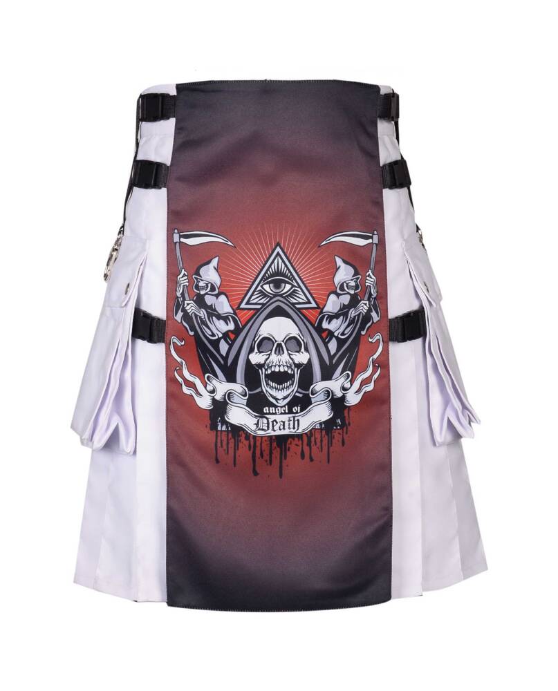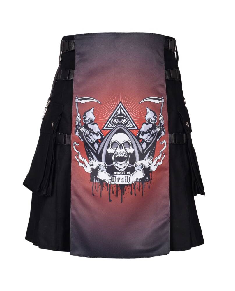 Designed for those who dare to stand out, the Angel of Death Kilt is suitable for alternative fashion events, gothic gatherings, or any occasion where individuality is celebrated. With its bold imagery and evocative symbolism, this kilt serves as a powerful expression of personal style and creativity.