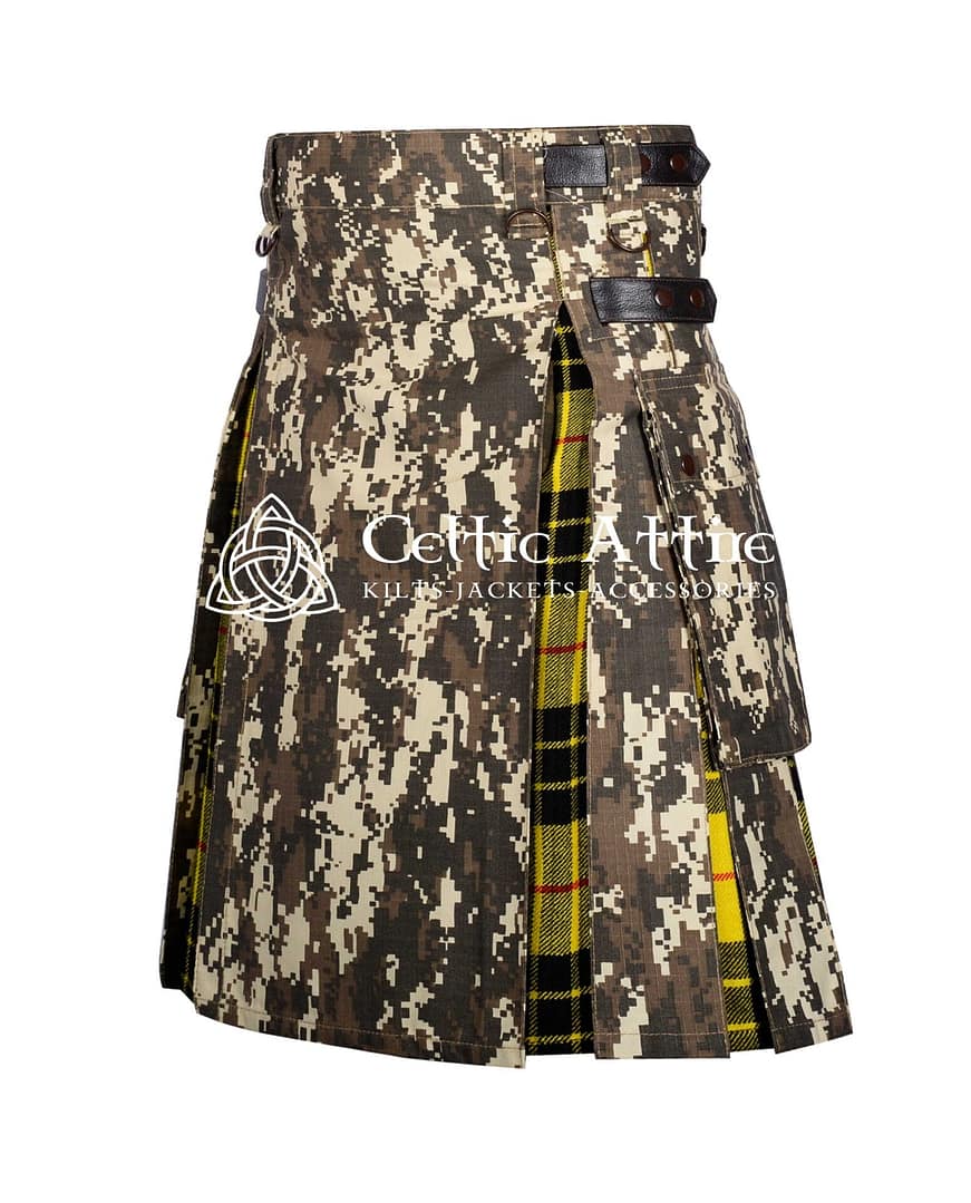 The Digital Camo Cotton Macleod of Lewis Tartan Hybrid Kilt is versatile enough for a variety of events. Whether you’re attending outdoor festivals, family gatherings, or casual outings, this kilt adapts to your style. For a laid-back look, pair it with a simple t-shirt or hoodie. You can easily dress it up with a button-down shirt for more formal occasions, making it suitable for any setting.