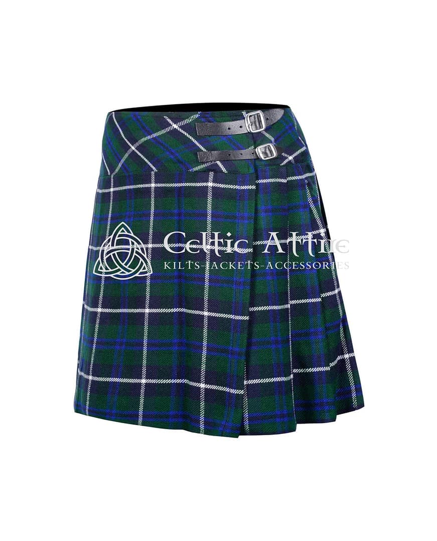 Embrace a classic look with our Douglas Blue Tartan Women Skirt, a stunning blend of tradition and contemporary style. This beautiful skirt features the iconic Douglas tartan, showcasing a striking palette of deep blues and rich greens, perfect for any occasion.