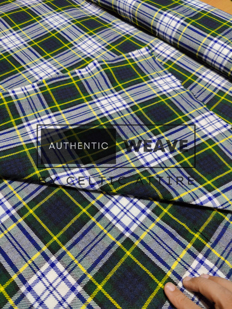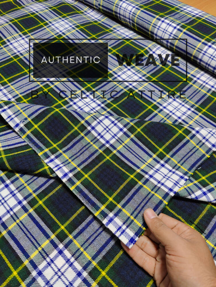 Immerse yourself in the timeless elegance of Dress Gordon Tartan Fabric, a cherished symbol of Scottish heritage and tradition. This tartan features a striking pattern of vibrant green, navy blue, and bright yellow checks, woven with meticulous craftsmanship. Ideal for creating kilts, skirts, scarves, or home decor items, Dress Gordon Tartan Fabric blends durability with classic charm. Embrace the spirit of Scottish culture with this fabric, perfect for crafting distinctive pieces that honor centuries of craftsmanship and style.