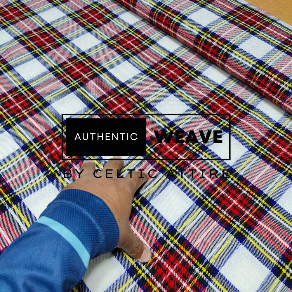 Explore the timeless charm of Dress Stewart Tartan Fabric, a beloved symbol of Scottish tradition and elegance. This tartan features a classic pattern of vibrant red, royal blue, and forest green checks, woven with meticulous craftsmanship. Ideal for creating kilts, skirts, scarves, or home decor items, Dress Stewart Tartan Fabric blends durability with traditional charm. Embrace the rich cultural heritage of Scotland with this fabric, perfect for crafting bespoke pieces that honor centuries of craftsmanship and style.