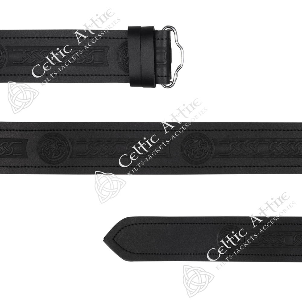 Celtic Knots and Circle Embossed Black Leather Kilt Belt