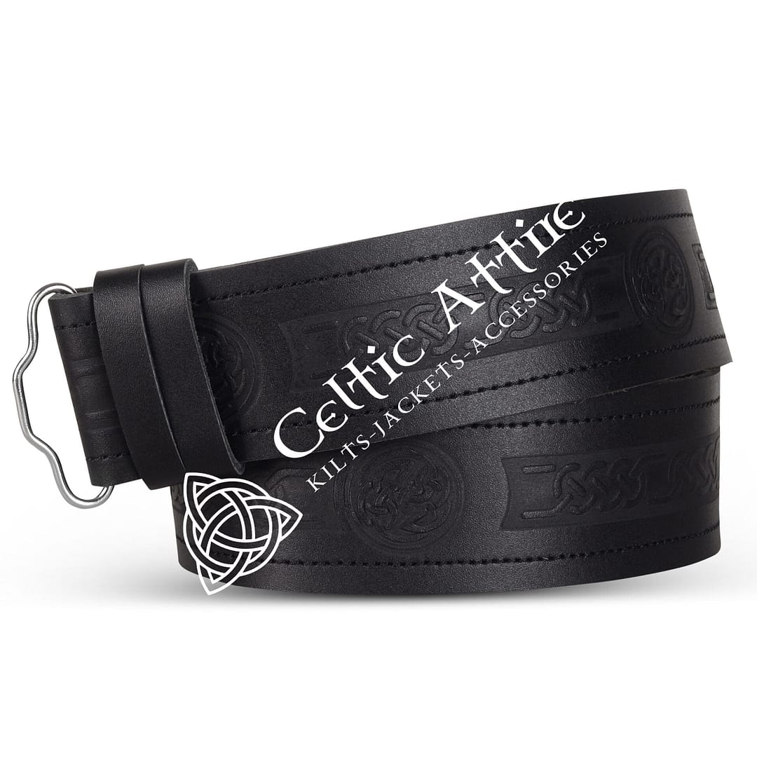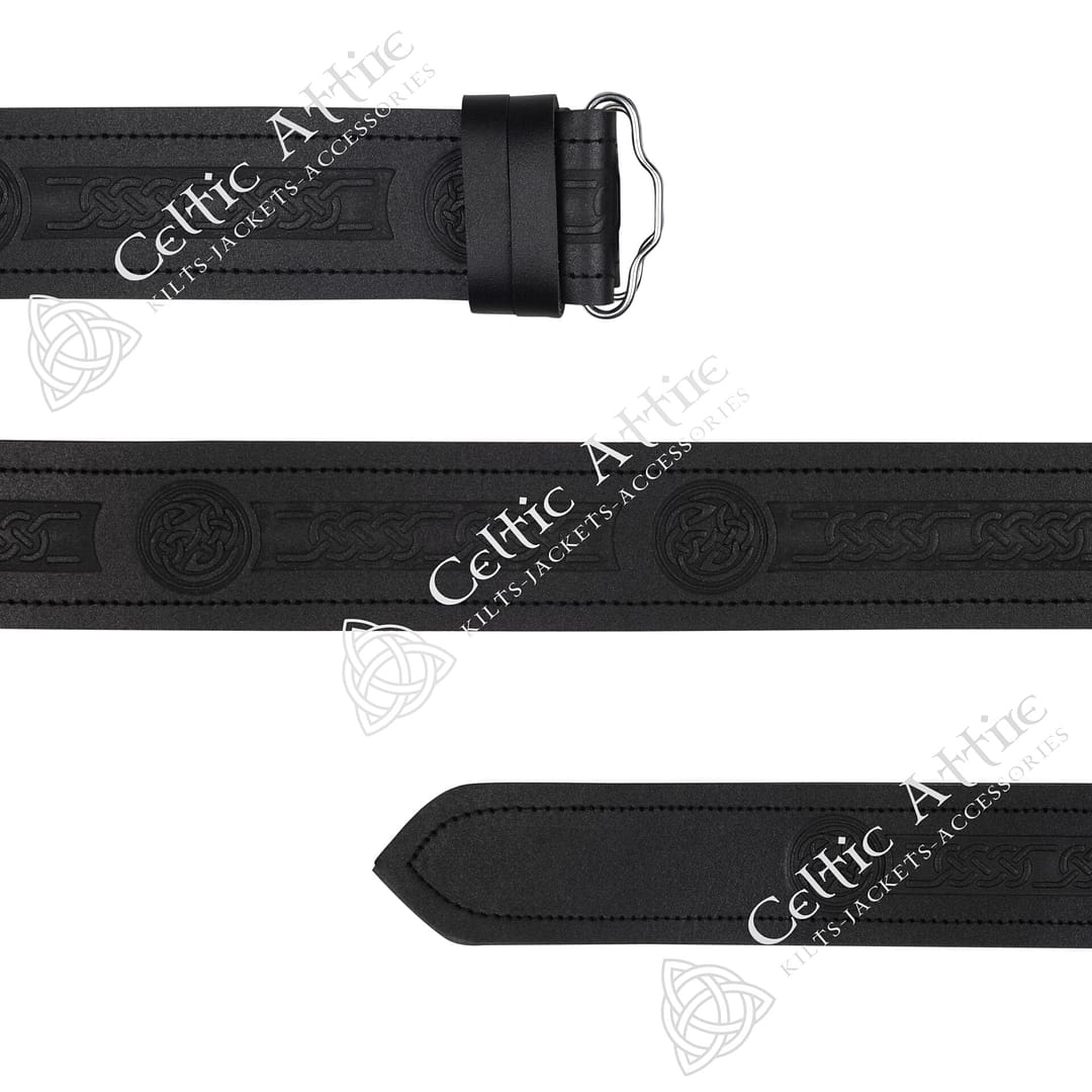 Endless Celtic Knots and Circle Embossed Black Leather Kilt Belt