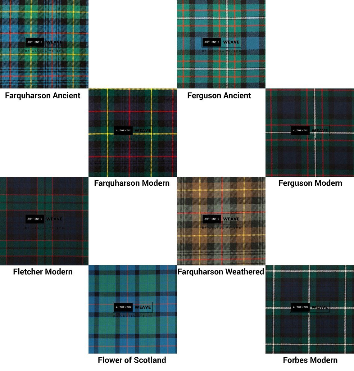 Welcome to the largest tartan collection of Celtic Attire. We offer more than 500 ready-to-ship tartan fabrics across the globe. To enable you to find your family colors we have listed scottish tartan fabrics in Alphabetic Order. This listing shows the Tartan Fabrics for Clans and Families names that starts with “F”