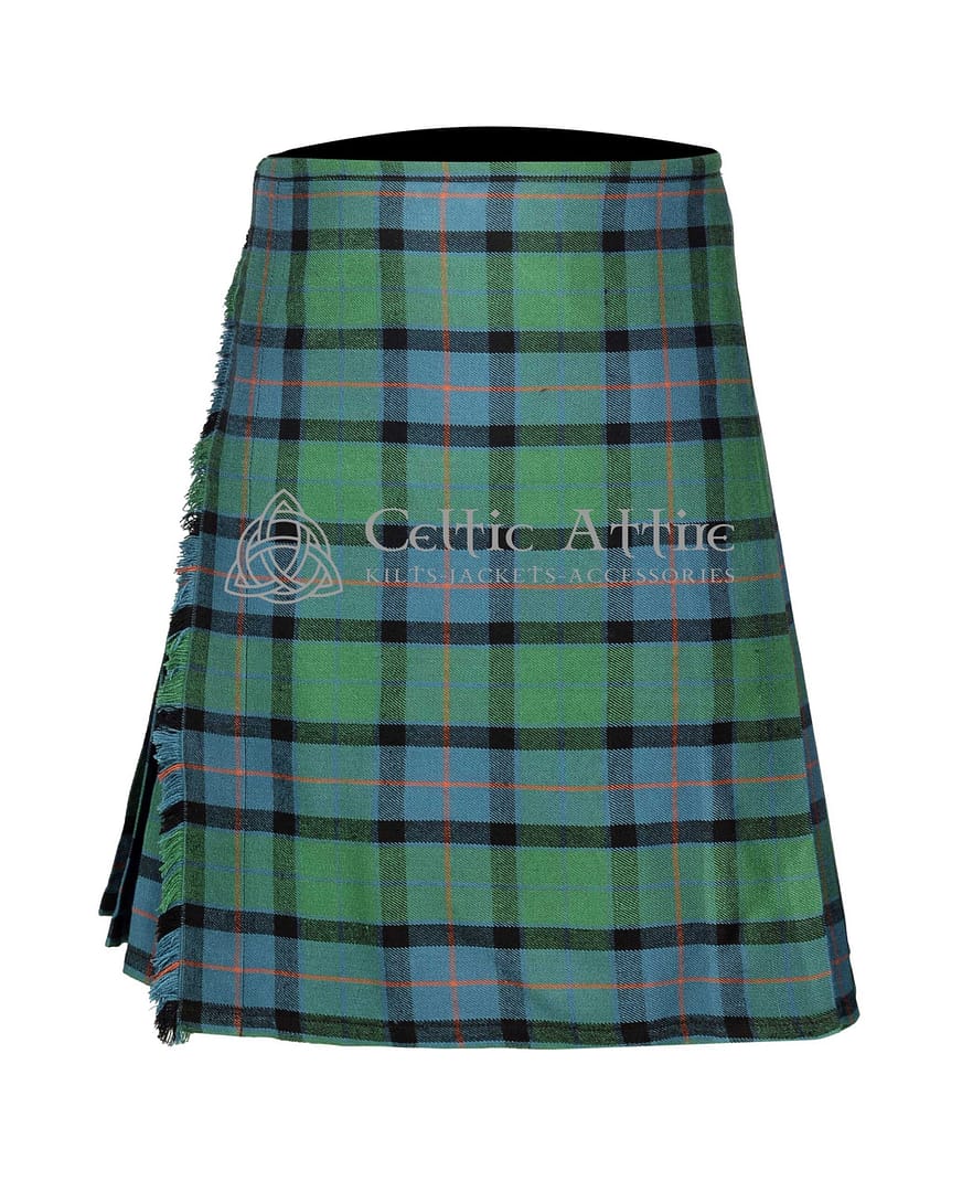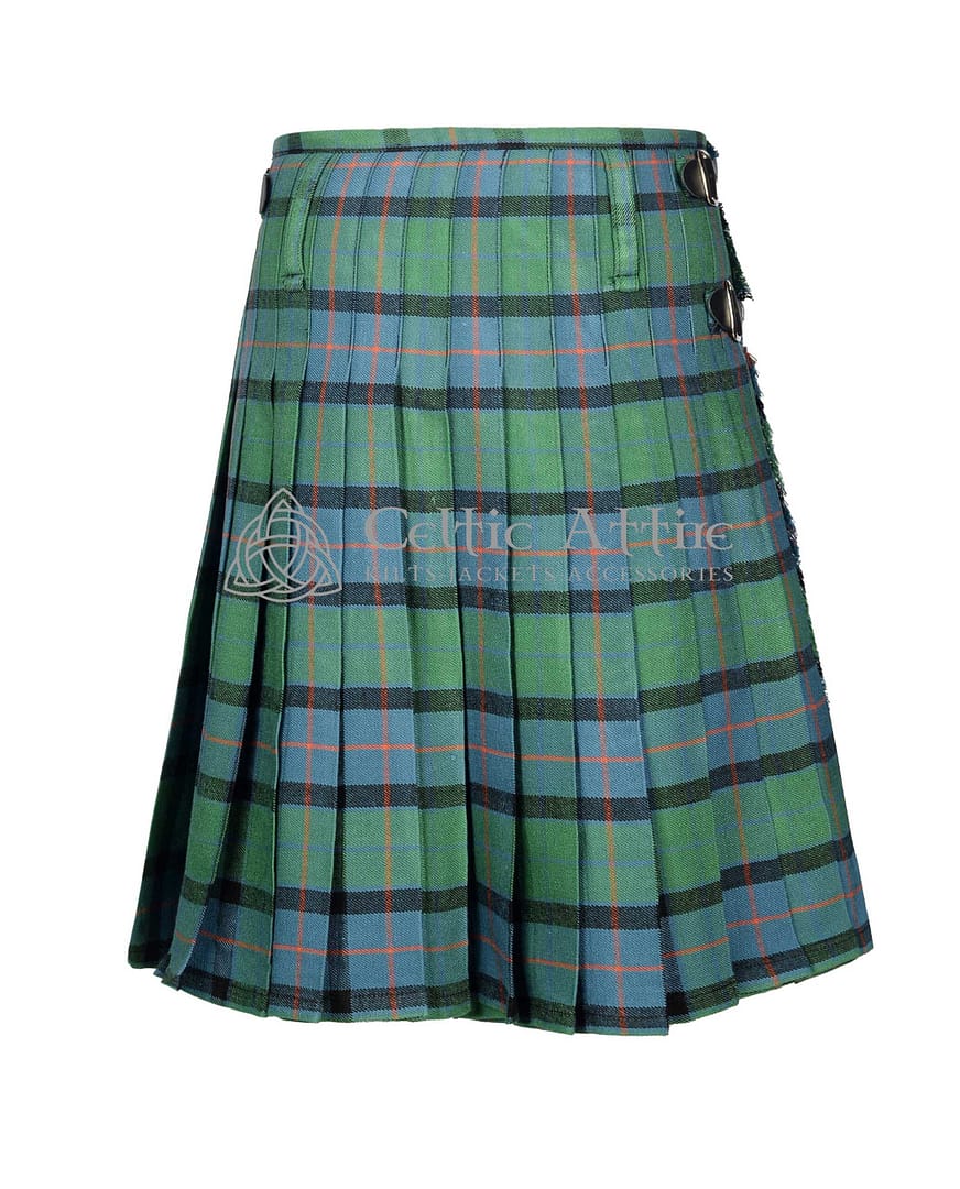 This kilt features classic knife pleats at the back for a structured yet flowing silhouette. Two adjustable leather straps with rust-free buckles allow for a secure and personalized fit, while sturdy belt loops give you the flexibility to accessorize with a sporran, belt, or kilt pin for a complete Highland look.
