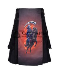 Incorporating Gothic aesthetics, the Firefighter Gothic Kilt often boasts darker hues like black or charcoal, accentuated by subtle yet striking embellishments such as studs, chains, or skull motifs. This fusion of firefighting symbolism with Gothic style creates a commanding presence, making it a standout piece in any wardrobe.