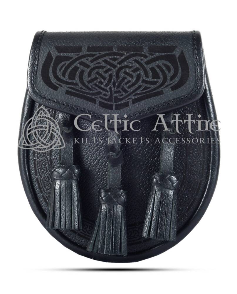 The Embossed Black Leather Day Sporran is an essential accessory for any kilt ensemble. Crafted from high-quality black leather, it features a stunning embossed design that adds texture and depth. This sporran is perfect for formal and casual occasions, making it a versatile addition to your wardrobe.