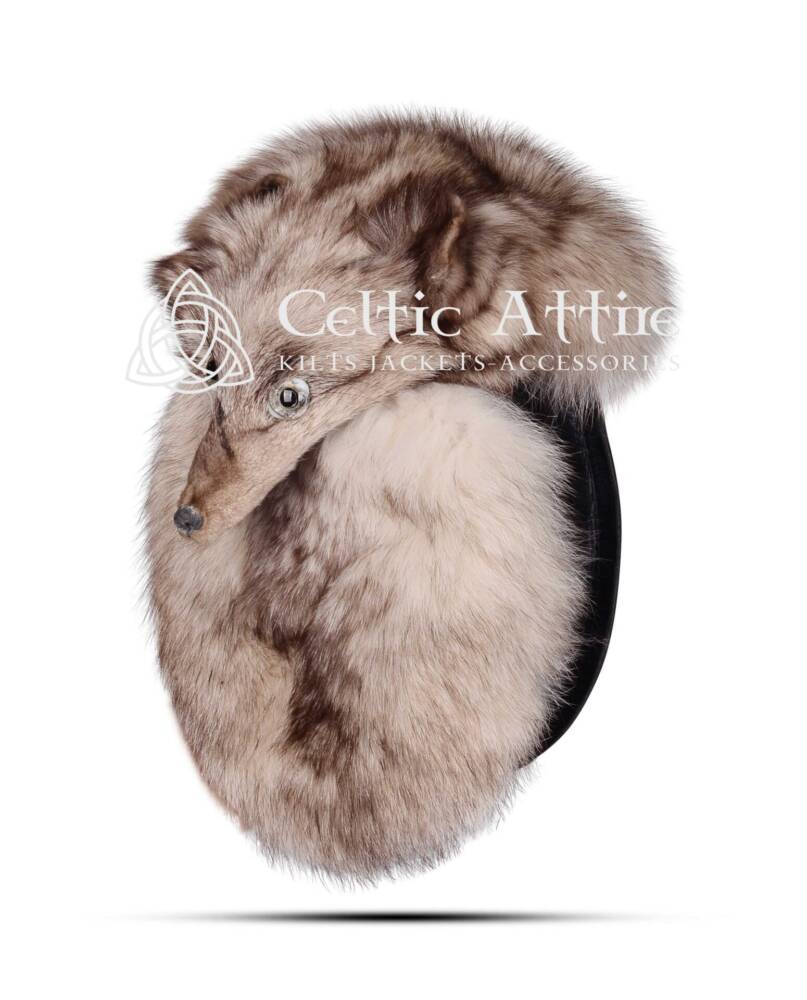 The Full Mask Cream Coyote Sporran is made with premium materials. We have crafted the front flap from authentic coyote fur, providing a luxurious appearance. We constructed the back from genuine leather, ensuring durability and longevity. This combination of materials makes the sporran both functional and stylish.