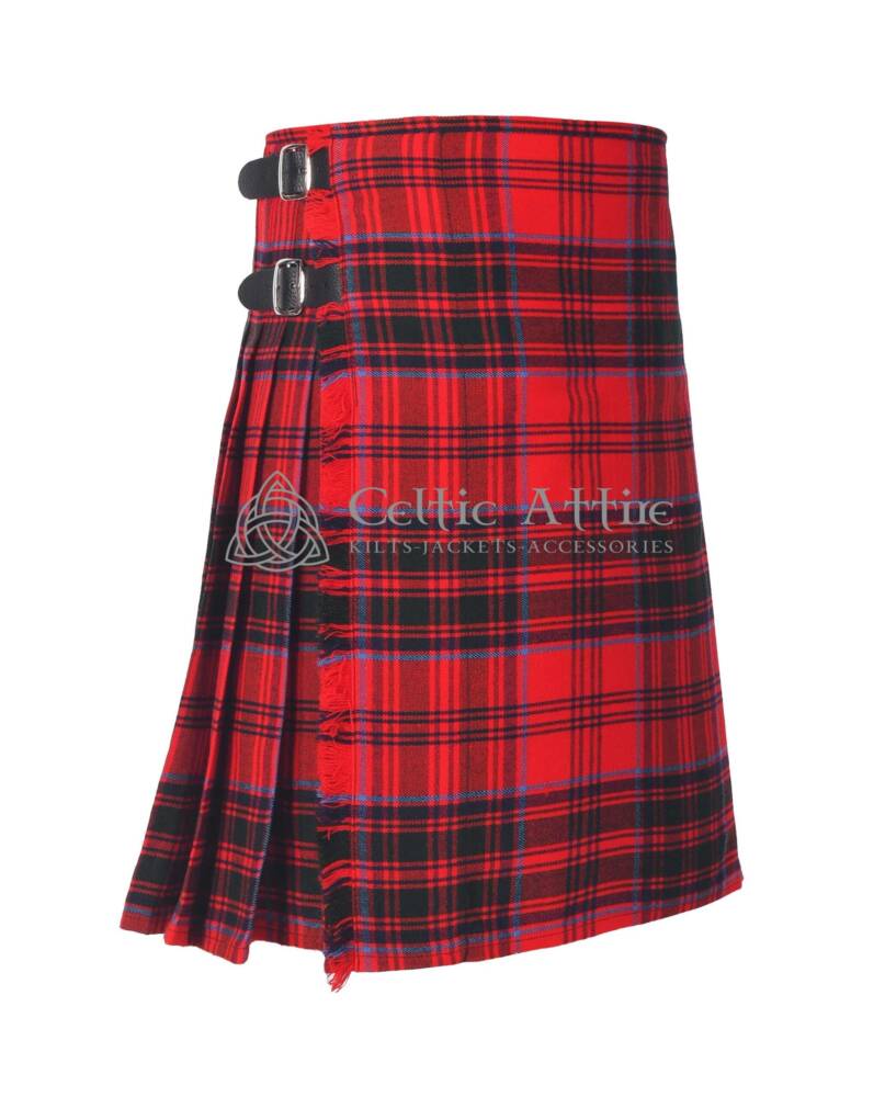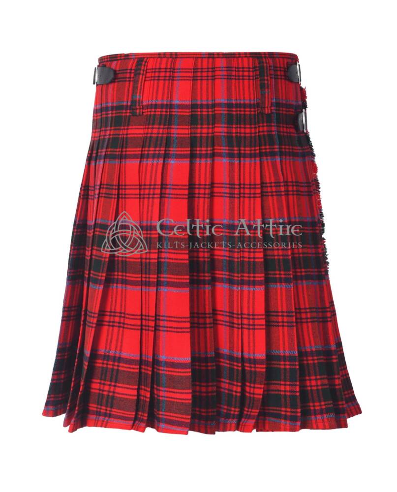Designed with traditional knife pleats at the back, this kilt provides a classic silhouette and freedom of movement. Two adjustable leather straps with rust-resistant buckles let you achieve a secure, personalized fit, while wide belt loops offer space to add accessories like a sporran, belt, or kilt pin for a complete Highland outfit.