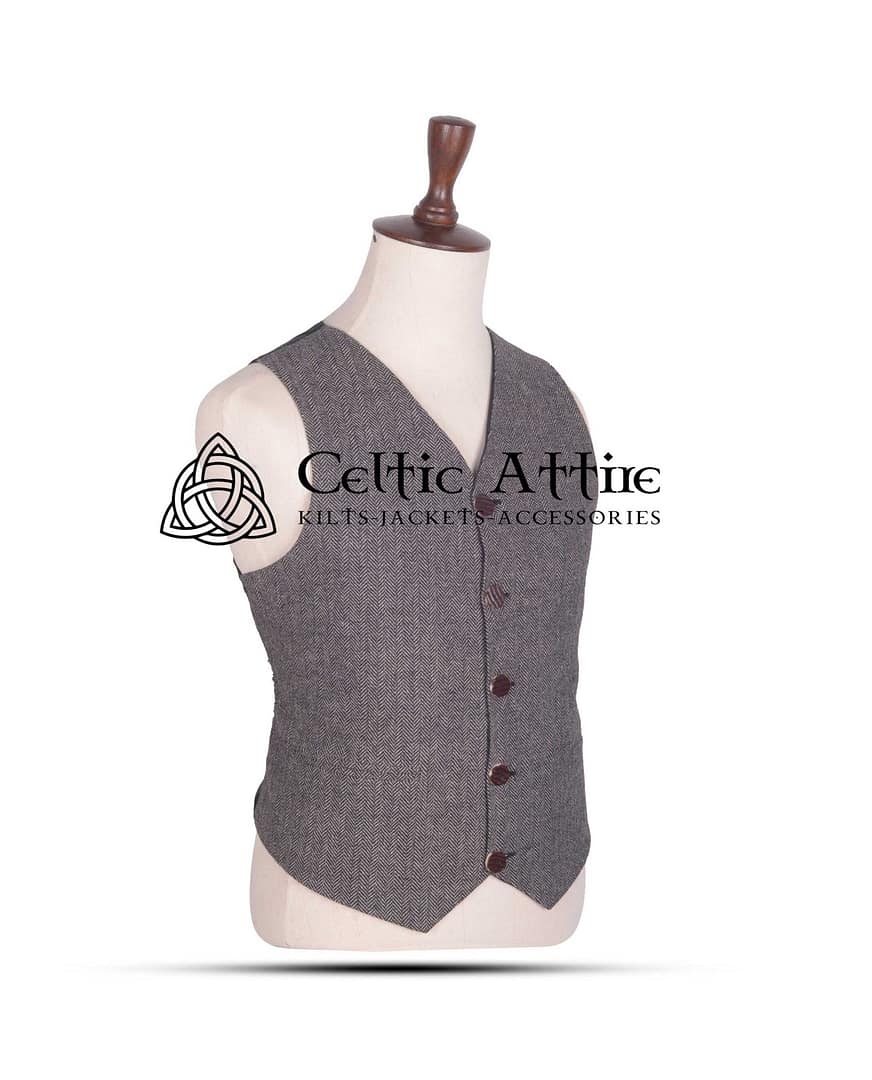 Crafted from high-quality tweed, this vest offers both warmth and durability while providing a comfortable fit. The neutral gray color of the tweed is not only practical but also versatile, complementing a variety of tartans, kilts, or formal trousers. Whether you wear it as part of a full Highland ensemble or as a standalone piece, the Gray Tweed 5-Button Argyll Vest elevates any outfit with its subtle sophistication.
