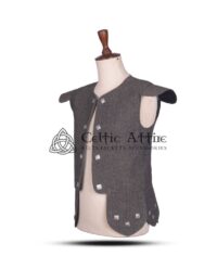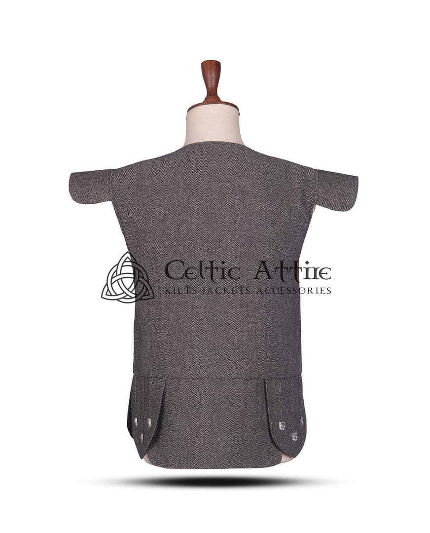 The metal buttons on the front add a stylish, refined detail, complementing the rich texture of the tweed fabric. With adjustable waist straps, you can customize the fit for a secure, comfortable feel that lasts all day long. These thoughtful design features make the Gray Tweed Chieftain Waistcoat not only a stylish choice but also a practical one.