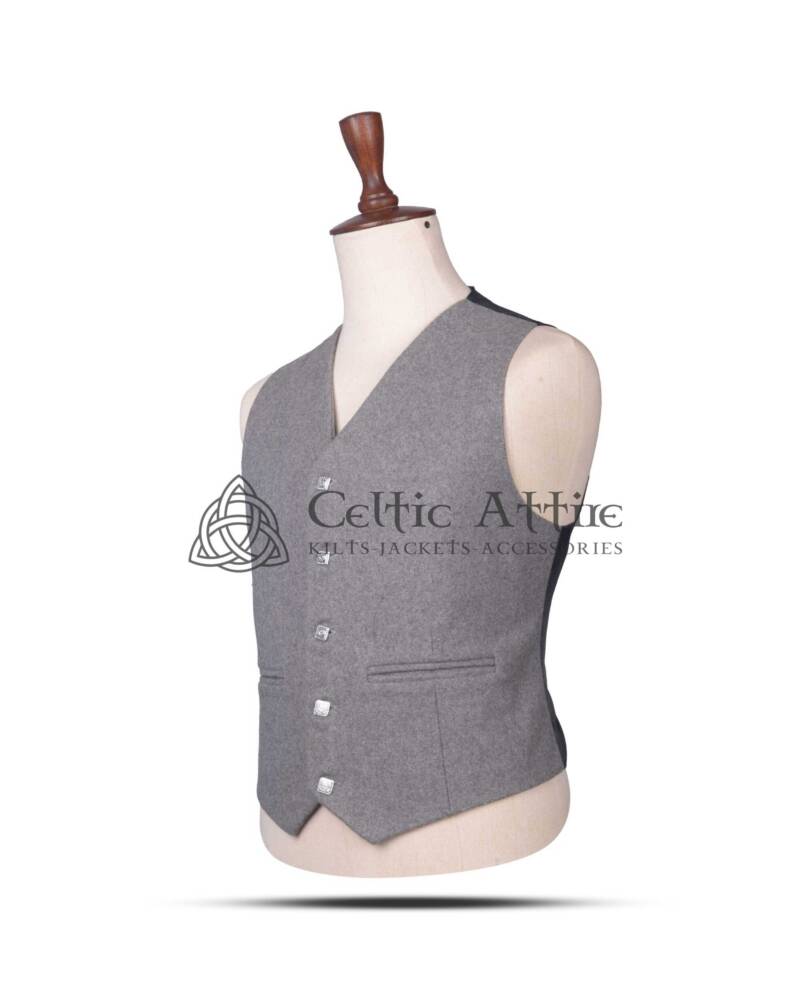 The sophisticated gray wool provides a classic, neutral base that complements a wide range of tartans, kilts, or formal trousers. Whether you’re attending a Highland wedding or a black-tie event, this waistcoat adds a touch of timeless elegance and polish to any outfit. Its tailored fit ensures a sharp, structured look while allowing ease of movement for all-day comfort.