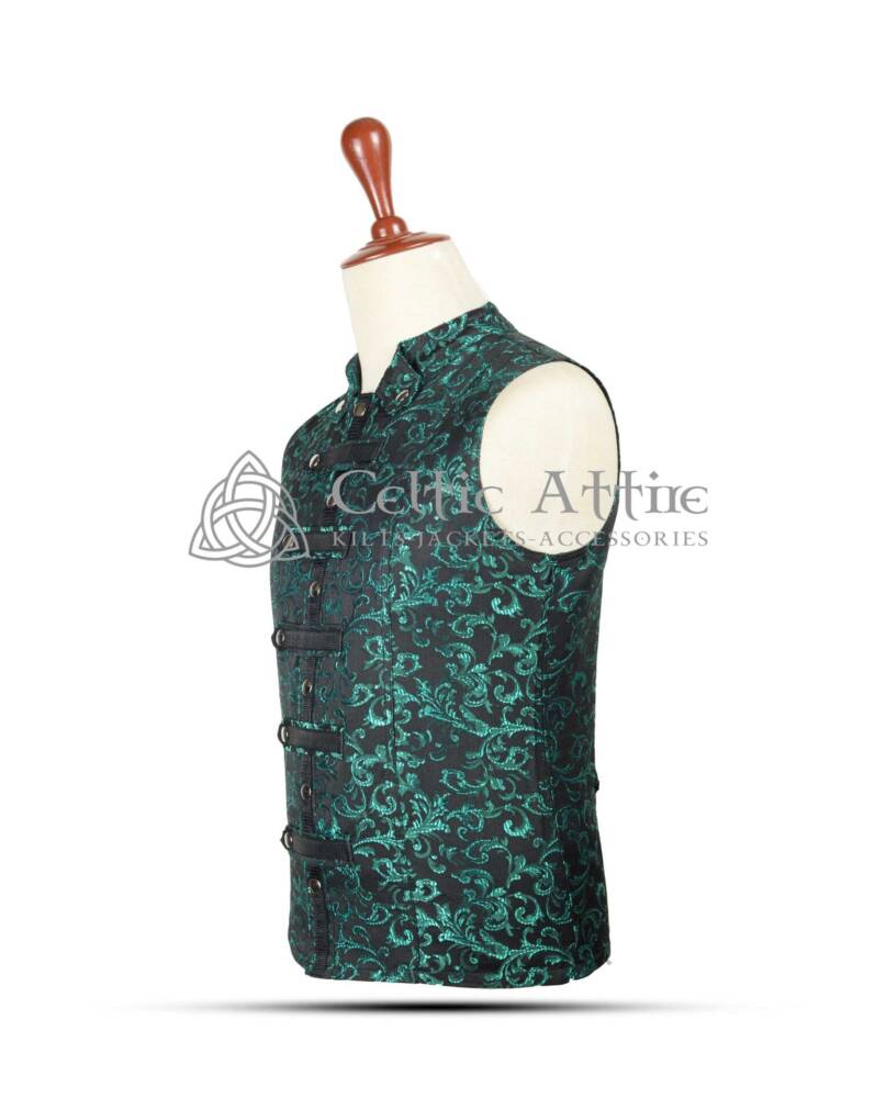 Designed with meticulous attention to detail, this vest also includes adjustable side tabs for a customized fit. Whether you dress it up for formal occasions or keep it casual for everyday wear, the Green Brocade Gothic Vest elevates your outfit effortlessly.