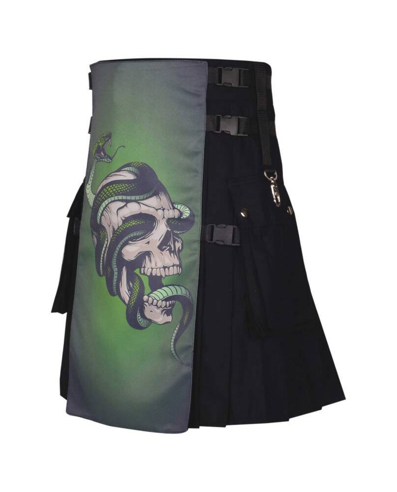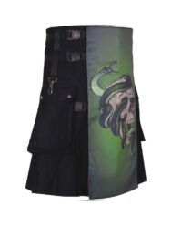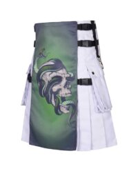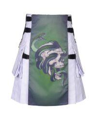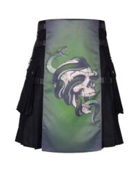Designed for those who dare to be different, this kilt serves as a statement piece for alternative fashion events, gothic gatherings, or any occasion where individuality is celebrated. Embodying a spirit of defiance and nonconformity, the Green Skull Gothic Kilt is a symbol of bold self-expression and unconventional style.