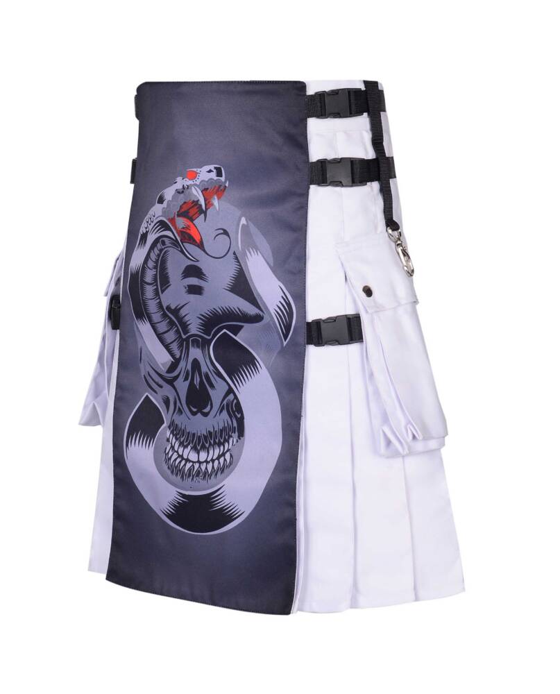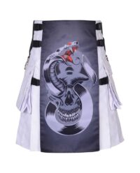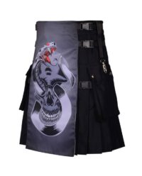 Designed for those who dare to stand out, this kilt offers a statement piece that commands attention and sparks conversation. Whether worn for alternative fashion events, gothic gatherings, or simply to express individuality, the Grey Skull Gothic Kilt is a symbol of rebellious spirit and unconventional style.