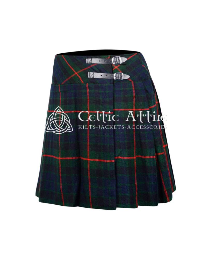 Step into style with the Gunn Tartan Women Knee Length Skirt, a stunning piece that celebrates both heritage and contemporary fashion. This skirt features the classic Gunn tartan, showcasing a rich combination of deep greens, blues, and subtle yellows that add depth and character to your outfit.
