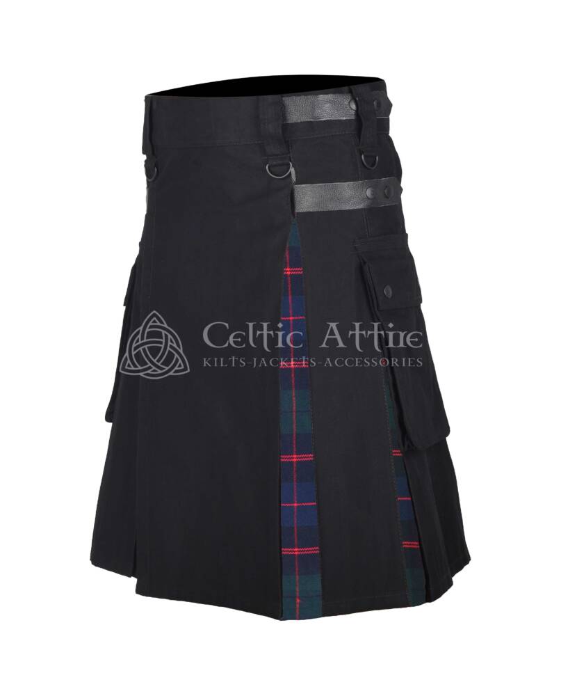 Guthrie Modern Tartan Black Cotton Hybrid Utility Kilt