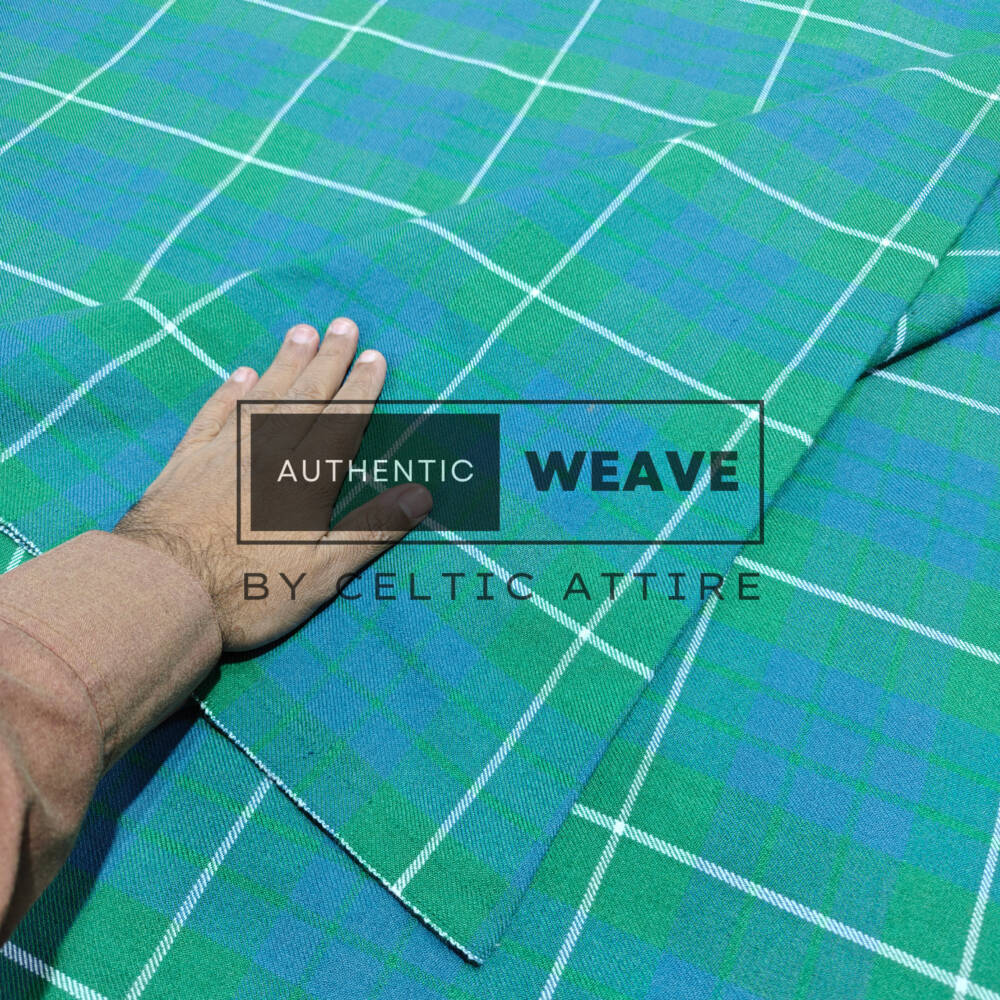 The Hamilton Green Ancient Tartan Fabric is a classic expression of Scottish heritage, featuring the distinguished pattern of the Hamilton clan. With soft, muted green tones and subtle accent lines, this tartan evokes a timeless, natural appearance reminiscent of traditional hand-dyed fabrics. Its elegant and understated design makes it perfect for both ceremonial Highland wear and contemporary fashion projects.