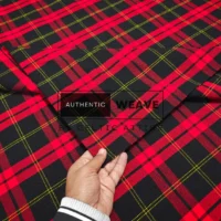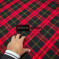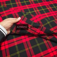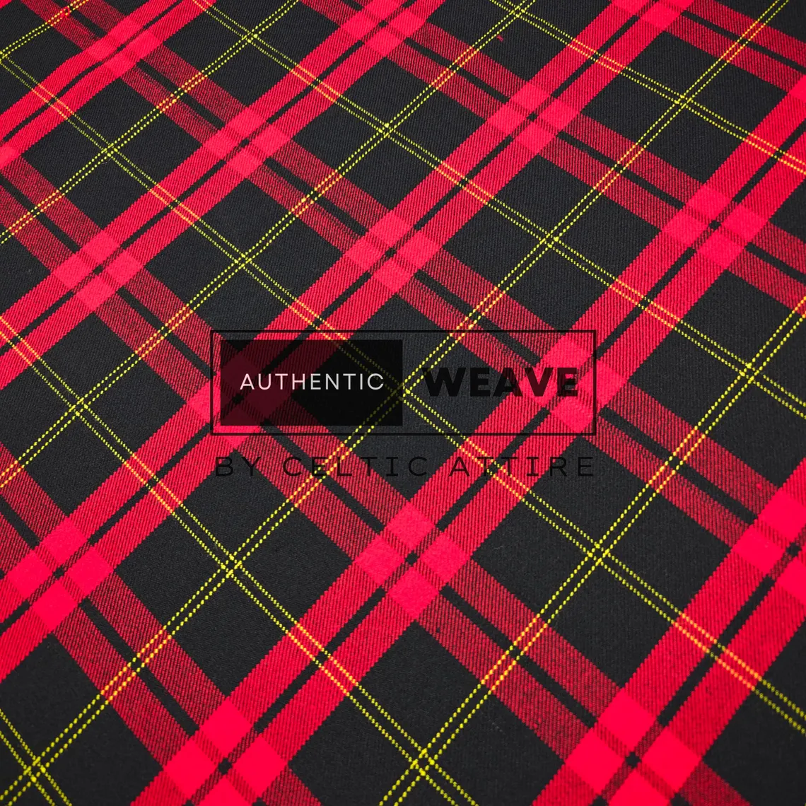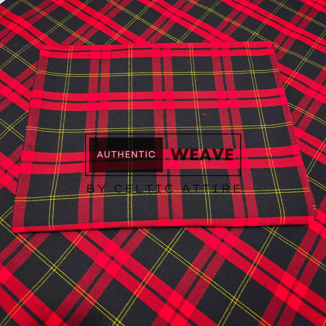 Harvie Heavyweight Tartan is a red and black-based tartan with yellow overchecks, Woven using the finest quality of wool blend.