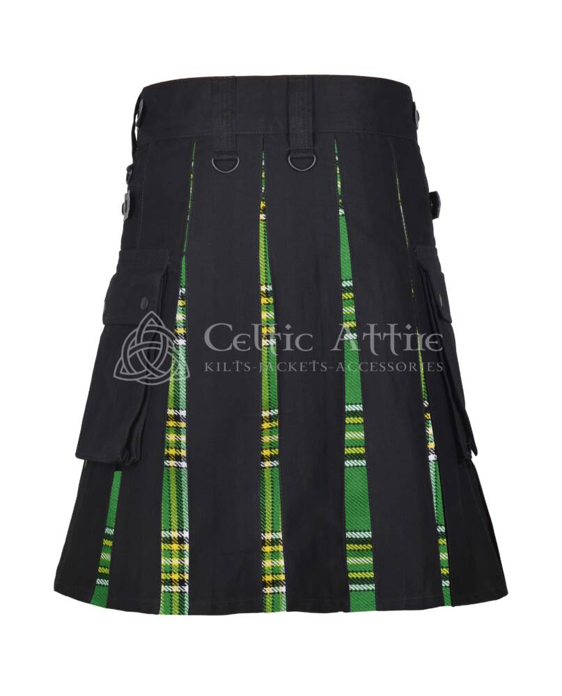Irish Tartan Black Cotton Hybrid Utility Kilt
