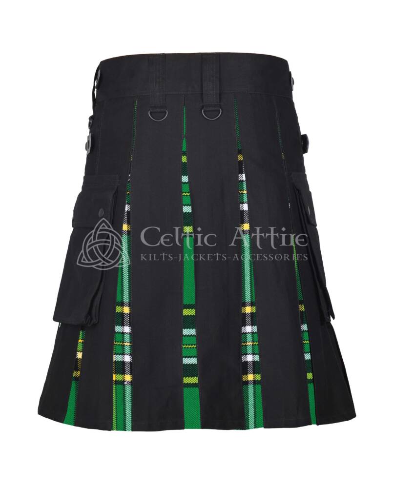 Irish National Tartan Black Cotton Hybrid Utility Kilt