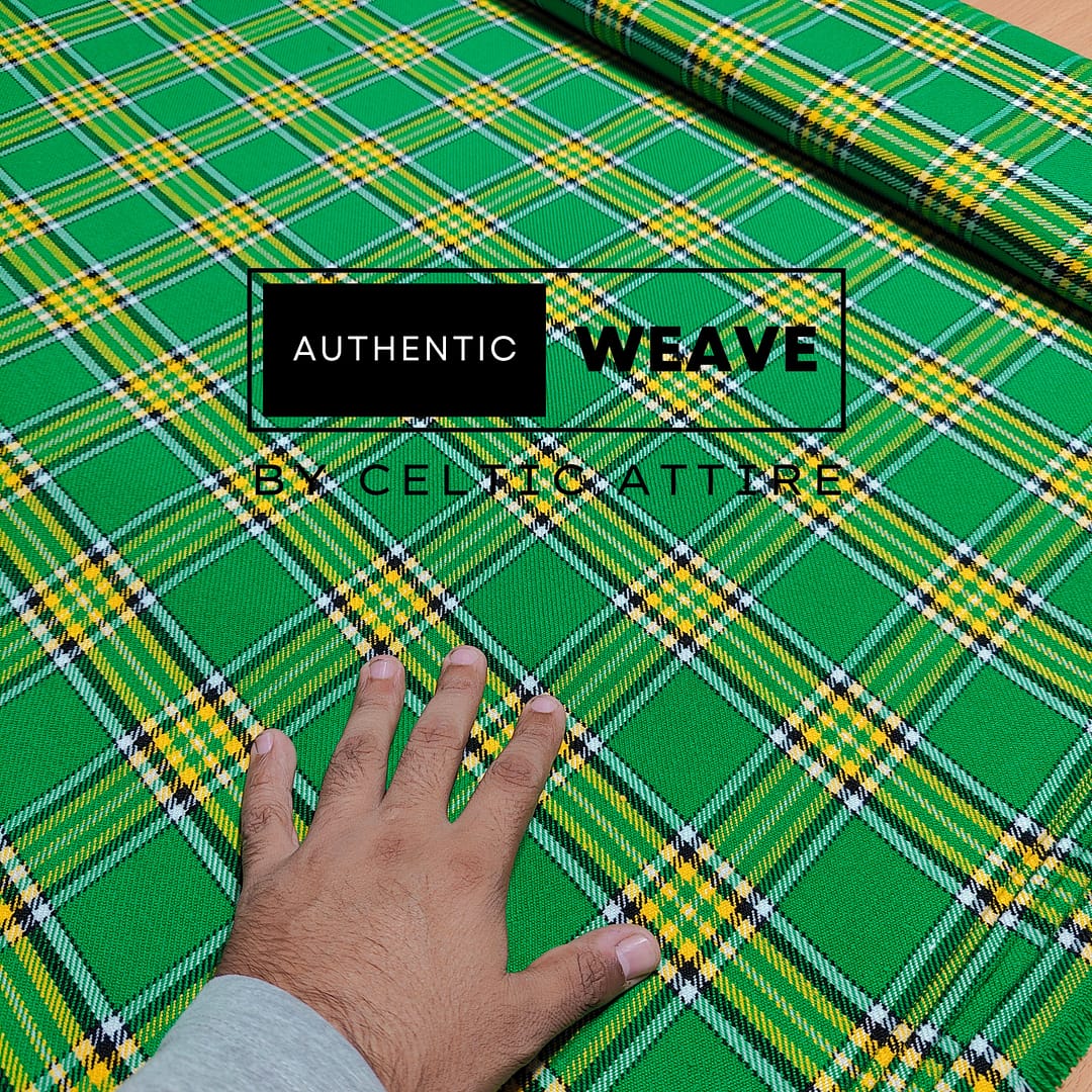 Embrace the spirit of Ireland with Irish National Tartan Fabric, a tribute to the Emerald Isle’s rich cultural heritage. This tartan design blends hues of deep green symbolizing Ireland’s lush landscapes, interspersed with shades of bright white, rich gold, and vibrant orange reminiscent of its flag and national symbols. Perfect for creating garments, accessories, or home decor that proudly display Irish pride and tradition, Irish National Tartan Fabric offers a timeless and dignified pattern. Whether you’re crafting a statement piece for a special occasion or adding a touch of Irish charm to your surroundings, this fabric embodies the enduring spirit of Ireland with every thread.