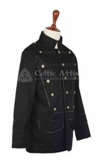 The jacket’s wide sleeves, turned-back cuffs, and high collar evoke the historic military garments of Highland clans. Wear it over a traditional shirt, belt, and kilt to complete your warrior look—or pair it with boots and breeches for a more historically accurate ensemble.