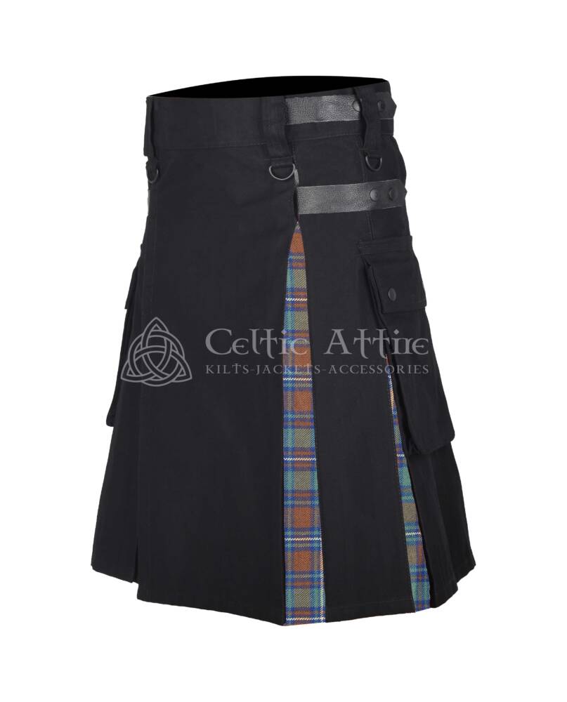 Kerry Tartan Black Cotton Hybrid Utility Kilt