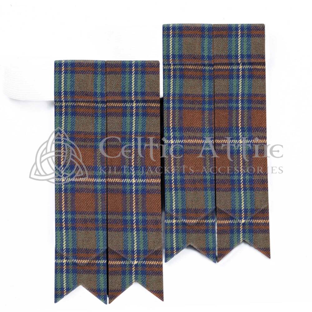 Skilled craftsmen craft these tartan flashes with attention to detail and durability. The carefully stitched tartan fabric holds its shape and provides a crisp, elegant finish throughout extended wear. An adjustable elastic or Velcro fastening system allows quick fitting and ensures a secure and comfortable hold behind the kilt hose. This practical design makes them ideal for long wear at weddings, Highland games, formal events, and ceremonial gatherings.