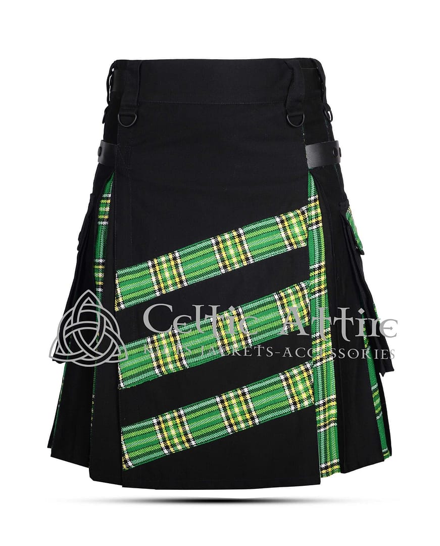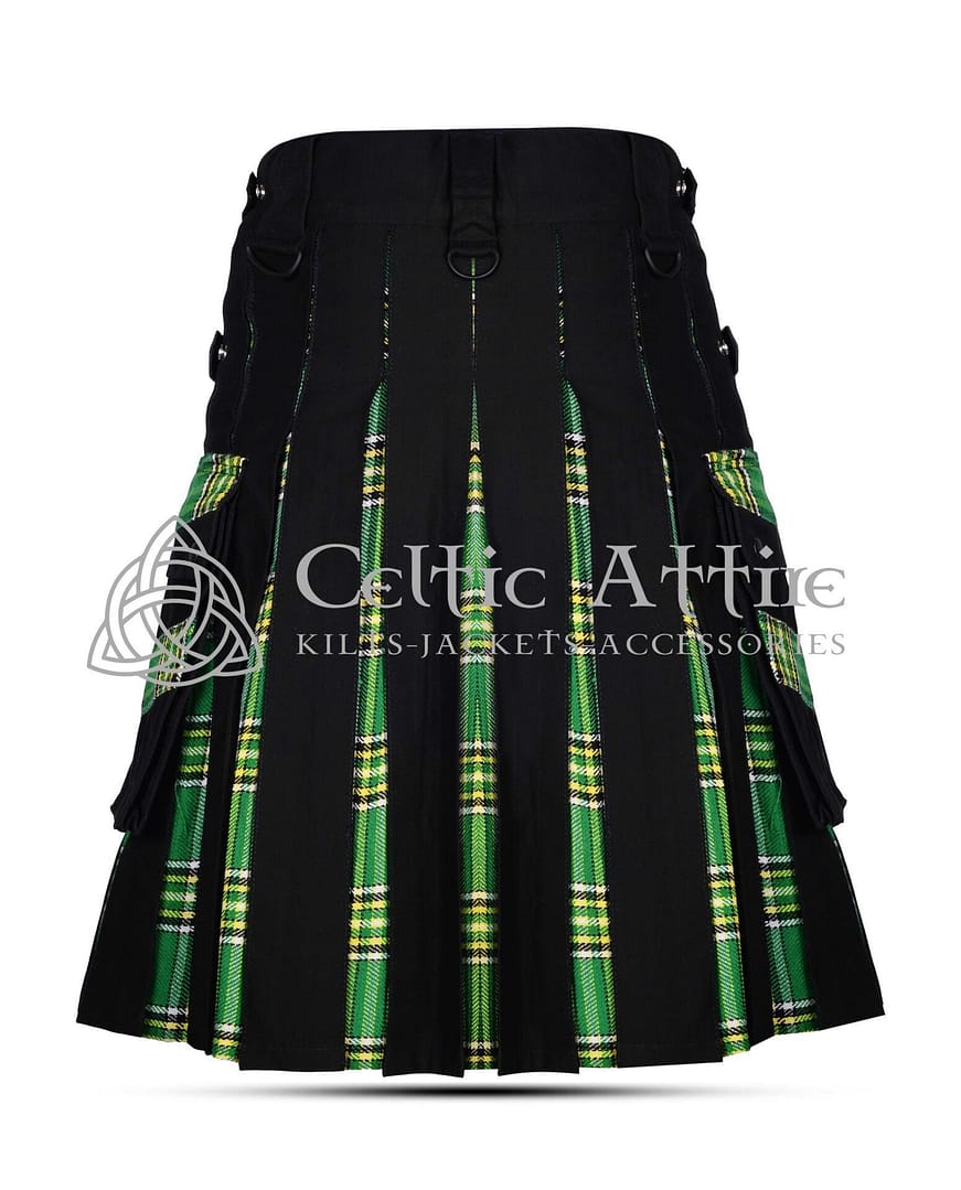 As a member of Krewe of Shamrock, you enjoy special discounted prices on kilts and related accessories. And as a loving touch of care and loyalty, any sort of customization will be free of cost. Celtic Attire has designed special Kilts and accessories for the Krewe that you can explore on this single page. This listing is for Krewe of Shamrock Hybrid Utility Kilt, which is crafted with premium-grade soft raised cotton fabric. It’s equipped with Irish National Tartan Under Pleats and Bias Strips across the front apron and side Cargo Pockets. Leather Straps offer size adjustment up to 2 inches up and down. Three Bias cut strips through the front apron add an extra touch of grace and fashion elegance. Same goes with the side cargo pockets.
