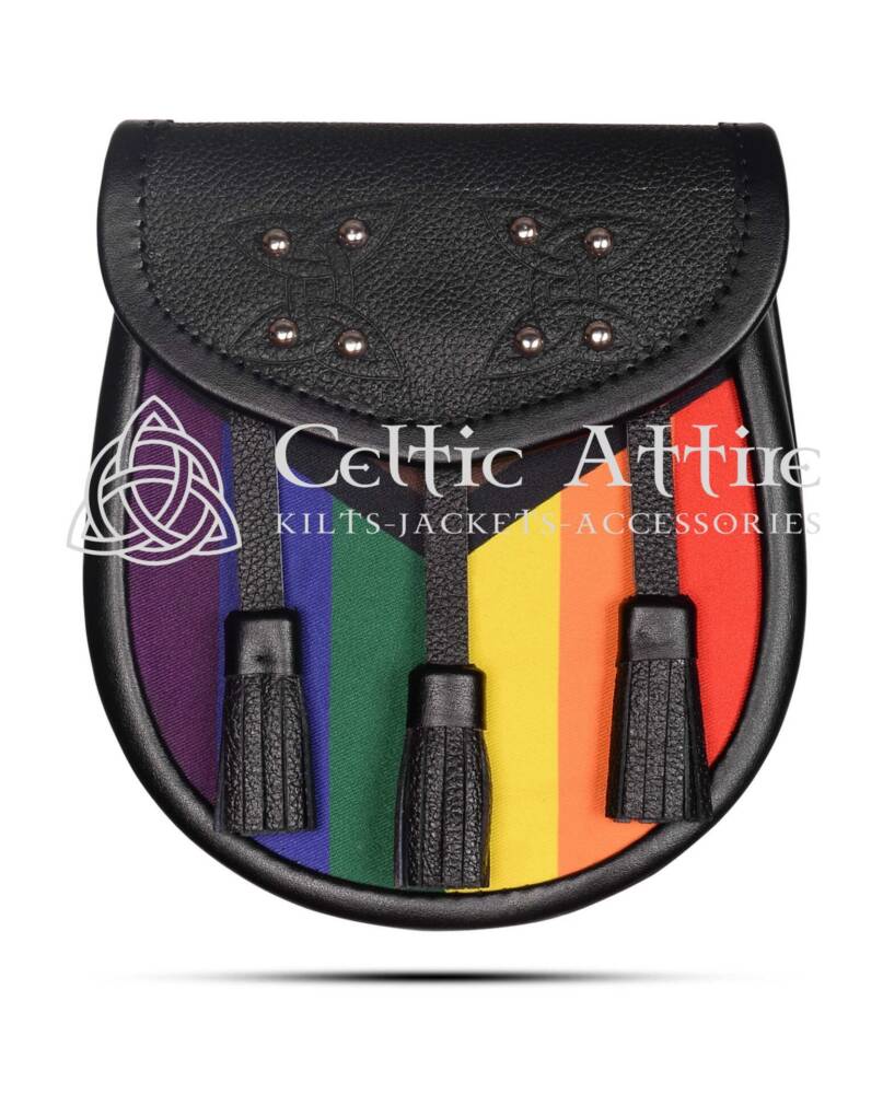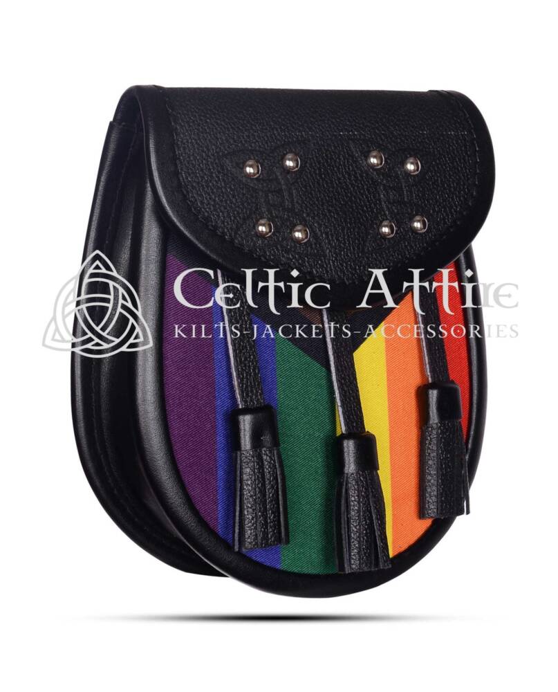 This versatile accessory is ideal for kilt wearers and anyone looking to express their support for the LGBTQ community. With ample space to hold your phone, wallet, and other personal items, it serves as both a stylish statement and a practical solution for those on the go. You’re attending a pride event, a festival, or simply want to showcase your pride in everyday life, the Black Leather Sporran is the perfect choice for making a bold statement.