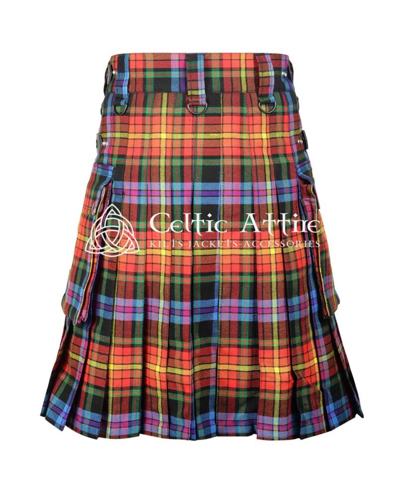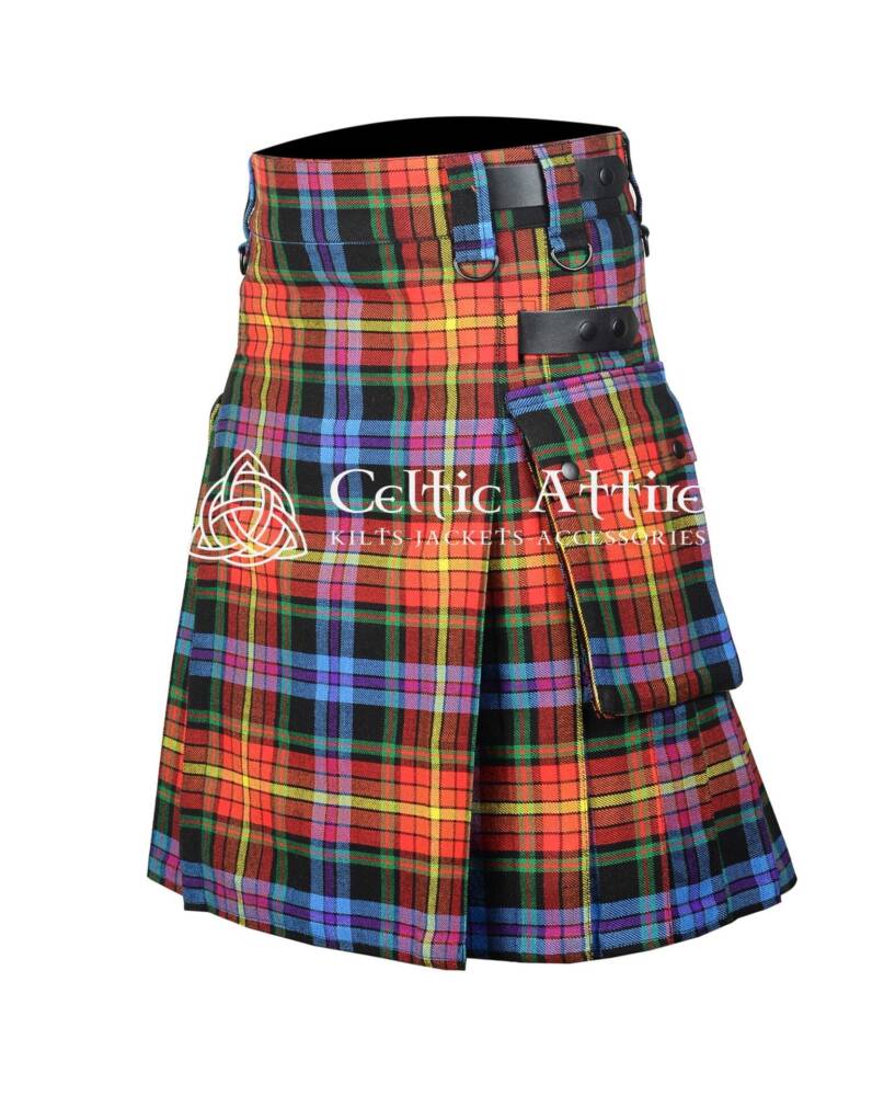 In summary, the LGBTQ Pride Tartan Utility Kilt is more than just clothing; it’s a powerful symbol of pride and community. Its versatile design allows for easy pairing with casual t-shirts or more formal attire for any occasion. Embrace your identity and celebrate love and inclusivity with the stylish functionality of the LGBTQ Kilt!