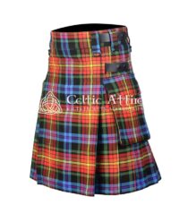 Functionality is key in this utility kilt. It includes multiple spacious pockets, providing ample storage for essentials like your phone, wallet, and other items. These pockets are cleverly integrated into the kilt’s design, ensuring that you can carry your belongings securely while maintaining a fashionable look.
