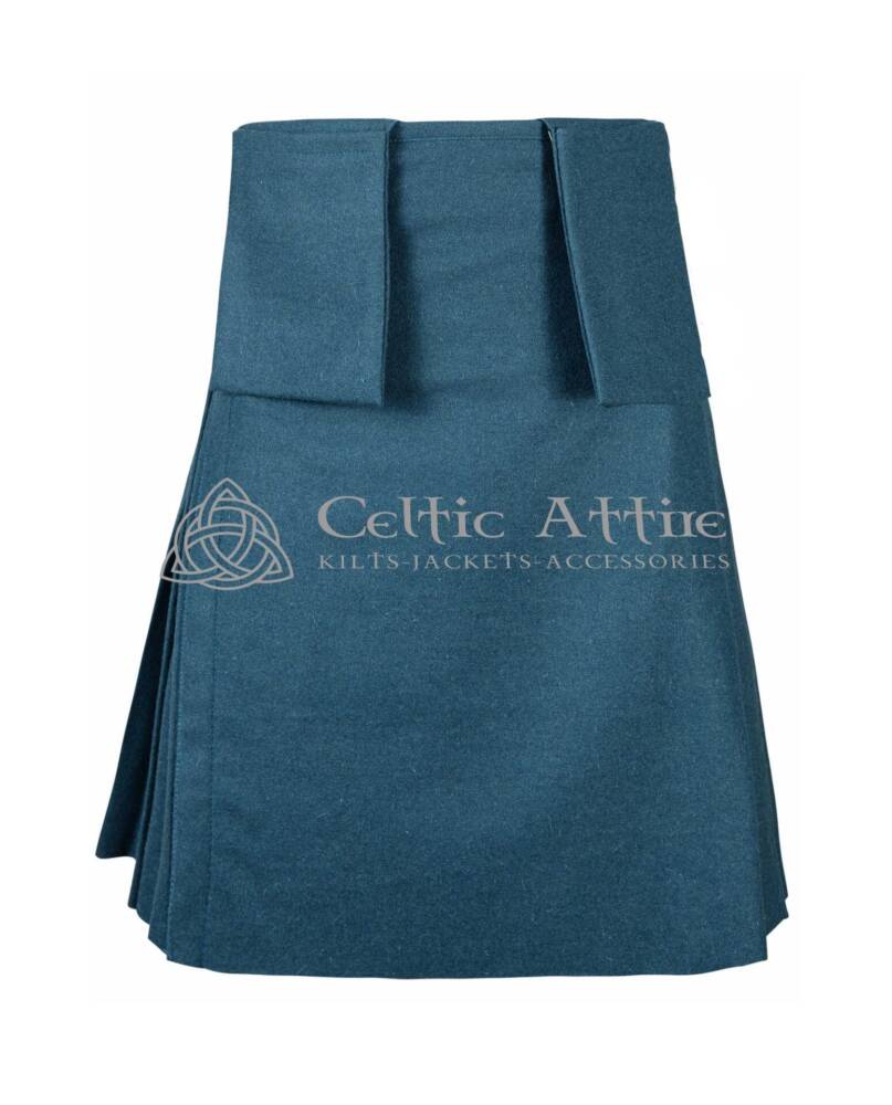 Lovat Blue Wool 8 Yard Kilt with Detachable Pockets