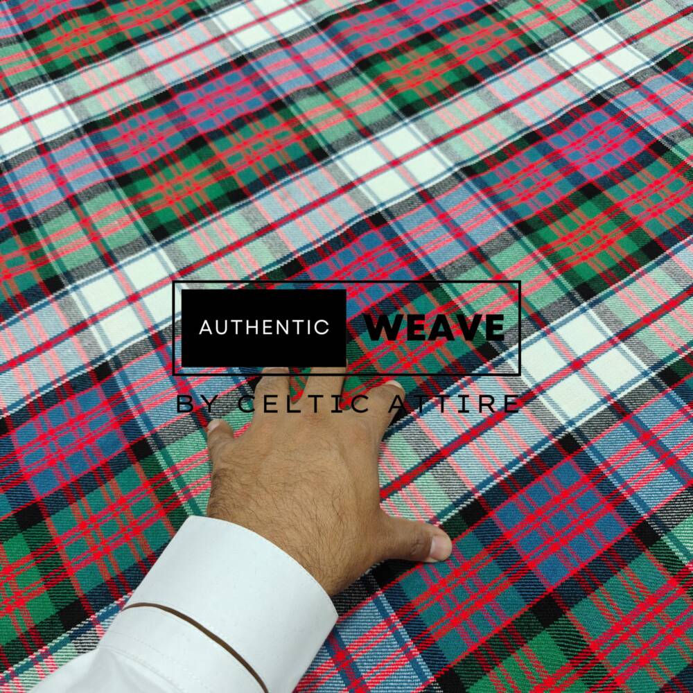 With a generous width of approximately 60 inches (150 cm), the Macdonald Dress Ancient Fabric 16 Oz Acrylic Scottish Tartan gives you plenty of room for kilts, jackets, dresses, scarves, and more. It’s also great for creating cushions, table runners, or wall hangings that bring a touch of Scotland into any space.