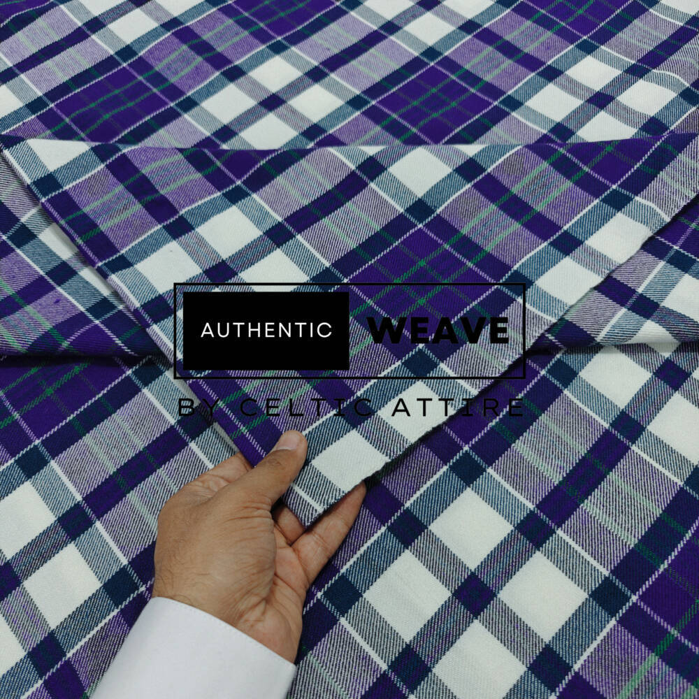 Woven in a premium 16 oz medium-heavy homespun weight, this tartan fabric offers exceptional durability, structure, and a graceful drape. With a generous 52-inch width, it provides ample material for tailoring traditional kilts, skirts, jackets, waistcoats, trousers, and formal Highland outfits. It is equally well suited for interior décor projects such as upholstery, cushions, curtains, and ceremonial displays.