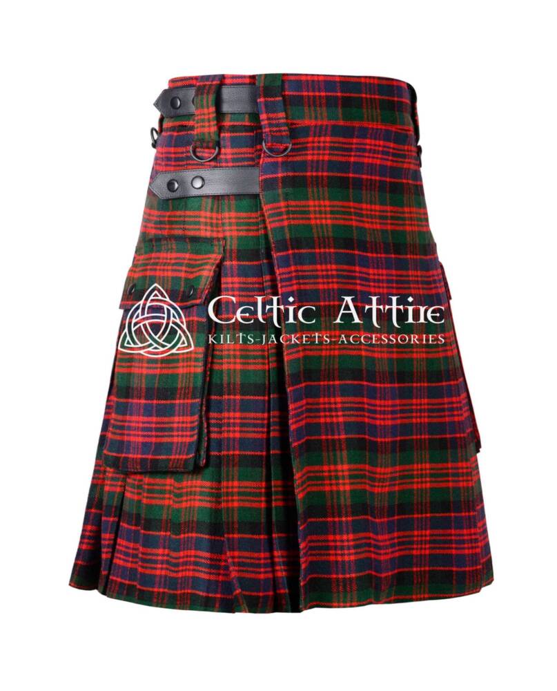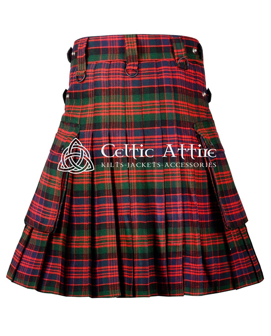 The Macdonald Tartan Utility Kilt is a striking garment that blends traditional Scottish heritage with modern functionality. Featuring the iconic Macdonald tartan pattern, this kilt showcases rich reds, greens, and blacks, making it a standout choice for those who appreciate classic style while honoring their roots.