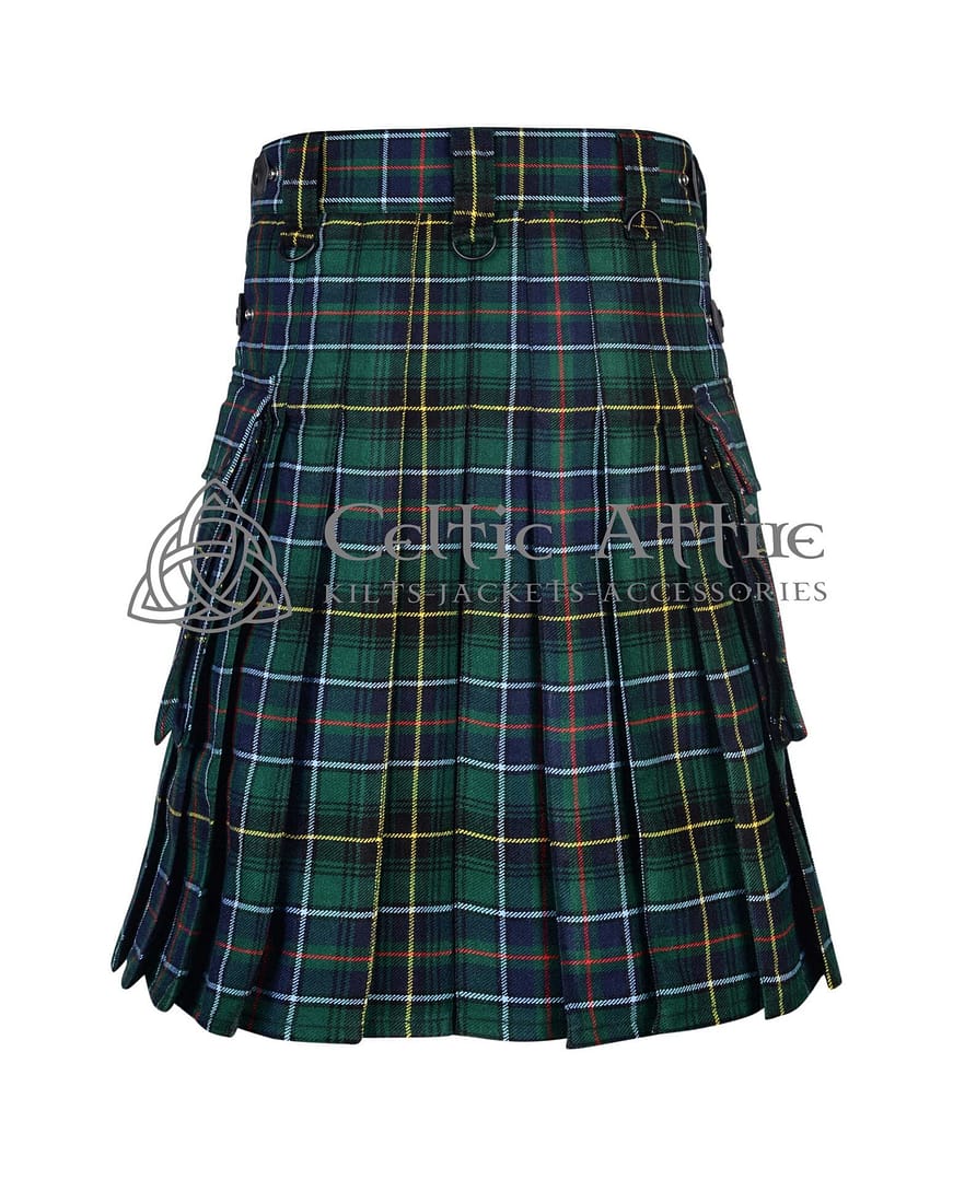 Functionality is a key highlight of the MacInnes Tartan Utility Kilt. It includes multiple spacious pockets, providing ample room for essentials such as your phone, wallet, and tools. These pockets integrate seamlessly into the kilt’s design, allowing you to carry your belongings securely while maintaining a stylish appearance.
