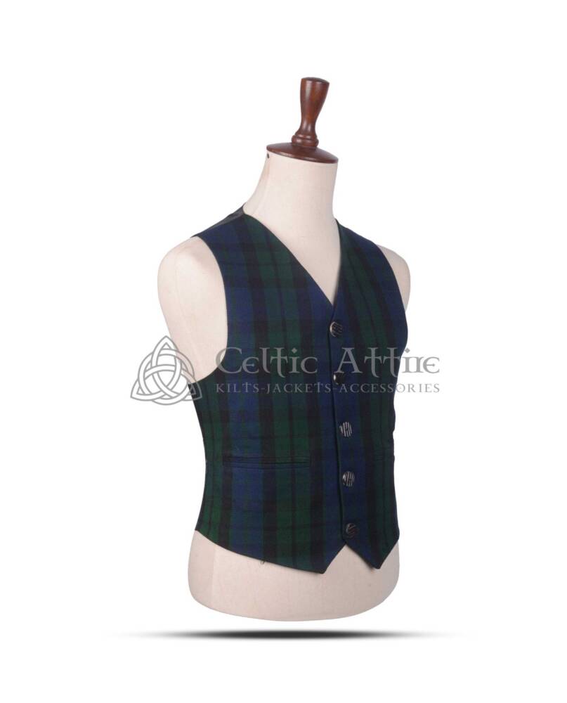 Two front welt pockets offer practicality, giving you space for small accessories like a pocket watch, cufflinks, or other essentials. The vest can be worn with matching Mackay tartan kilts or tartan trews for a complete Highland look, or paired with formal trousers for a more contemporary twist.