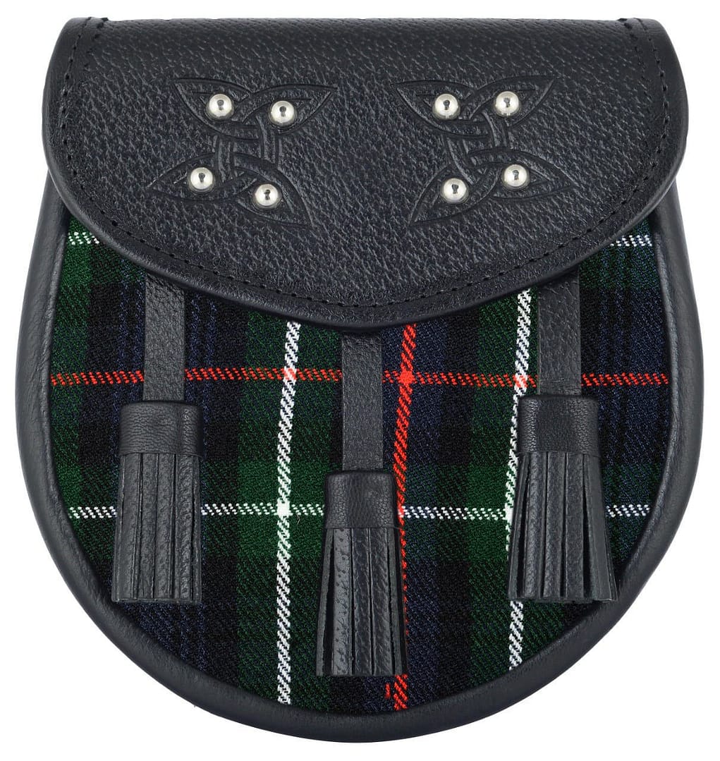 The Mackenzie Tartan Sporran is a distinguished accessory that celebrates the rich heritage of the Mackenzie clan, one of Scotland’s ancient and prestigious Highland clans. The tartan pattern associated with the Mackenzie clan typically features a striking combination of colors that reflect their historical identity and connection to the Scottish Highlands.