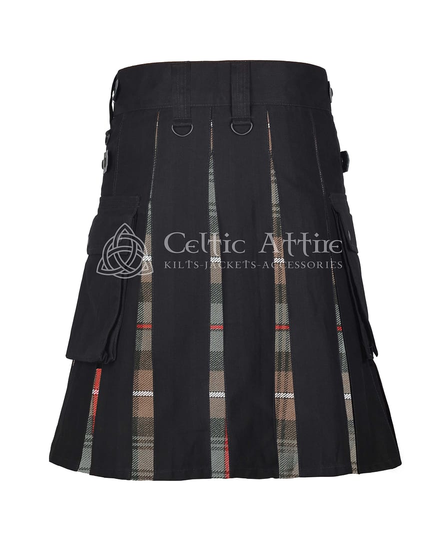 The Mackenzie tartan pleats add a touch of tradition, honoring Scottish heritage while giving you a distinctive, modern appearance. Designed for practicality, the kilt features deep, detachable cargo pockets on both sides, allowing you to store your tools, phone, wallet, or other essentials. These pockets keep your items secure and easily accessible without compromising the kilt’s streamlined look.