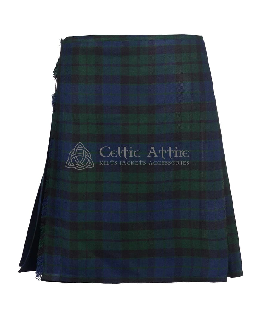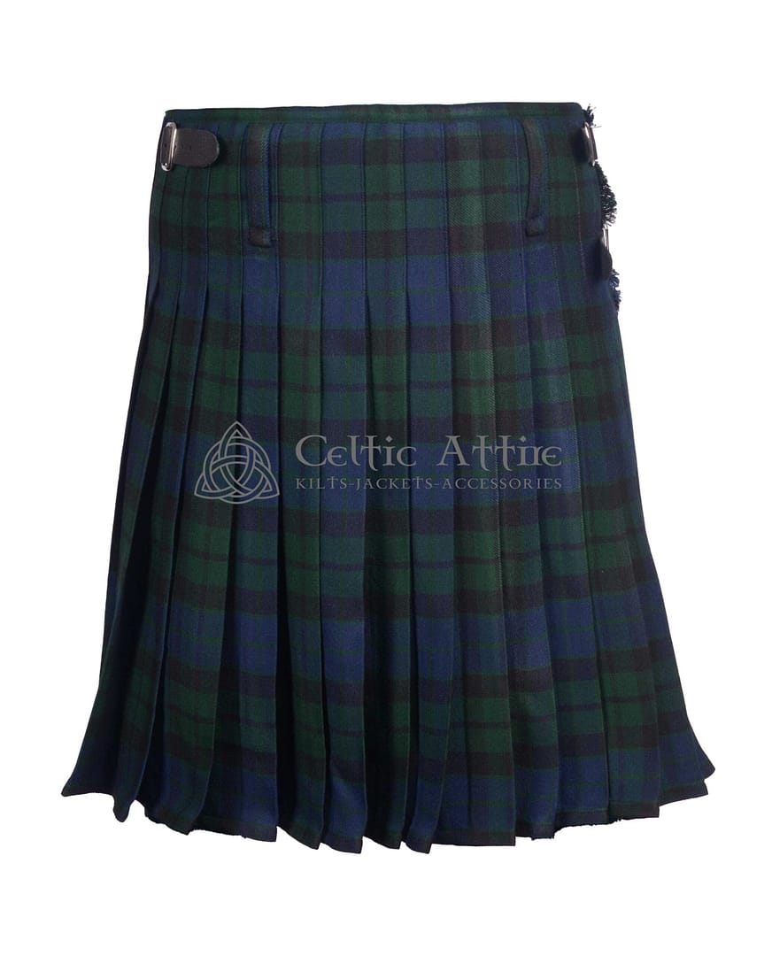 The full 8-yard construction provides generous pleating, allowing the kilt to flow beautifully with every step. Traditional knife pleats at the back ensure a sharp, structured silhouette, while the flat front apron adds a polished and clean finish. Two adjustable leather straps with chrome buckles let you achieve a custom, secure fit. Designed to sit just above the knee, this kilt offers a flattering and traditional Highland profile for all body types.