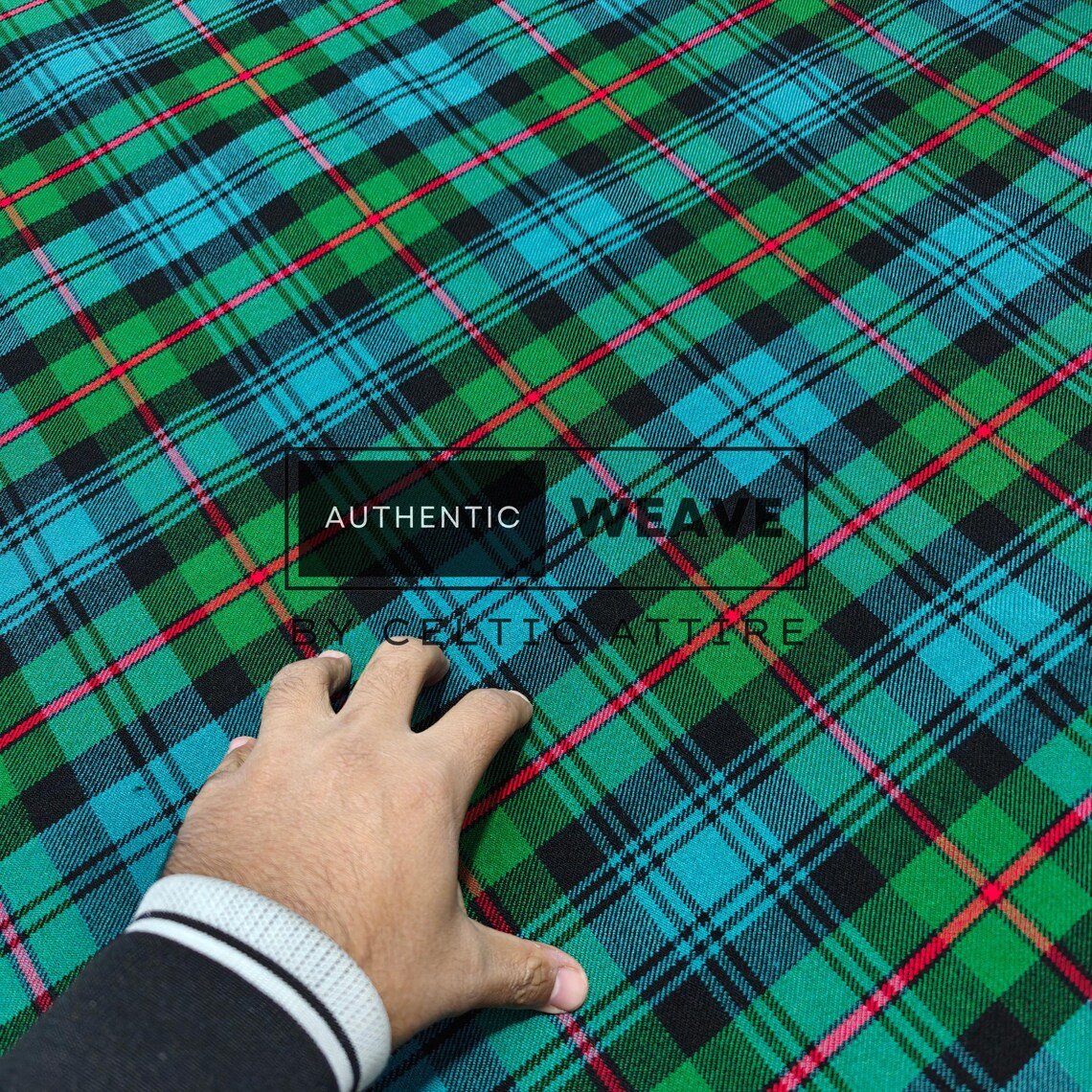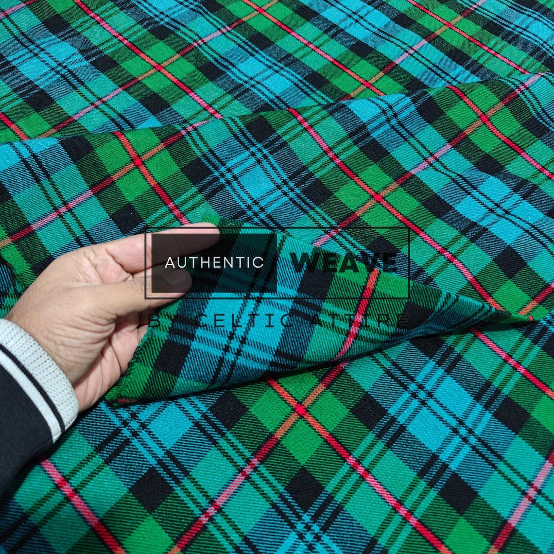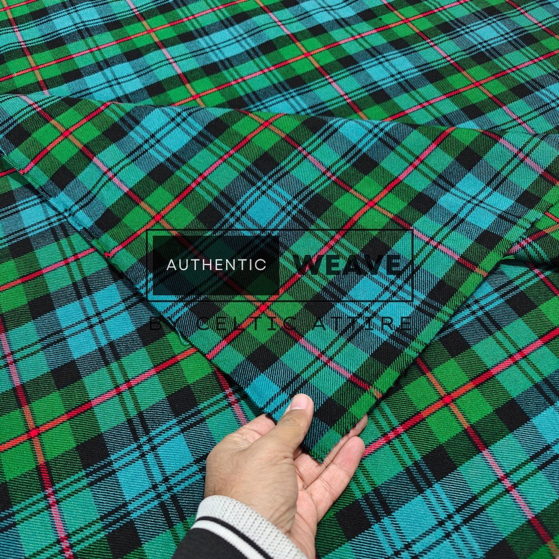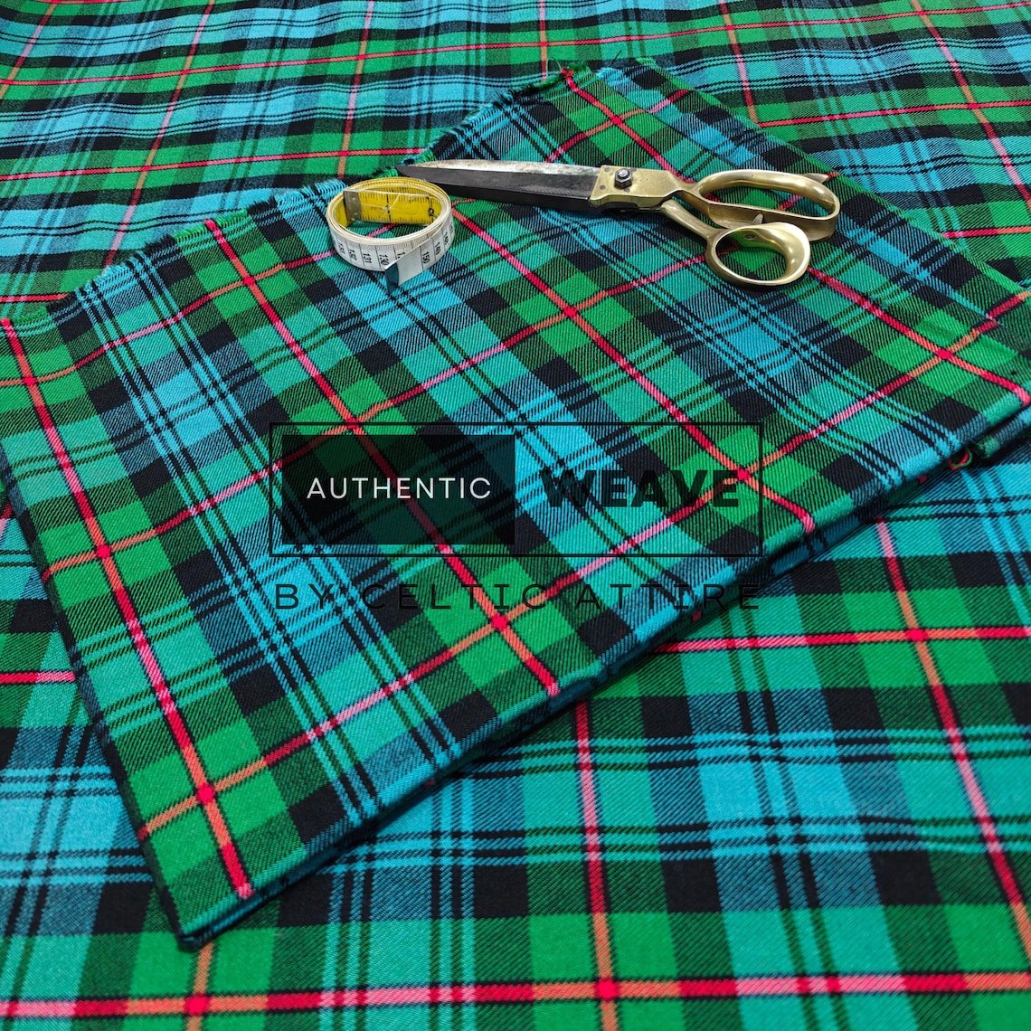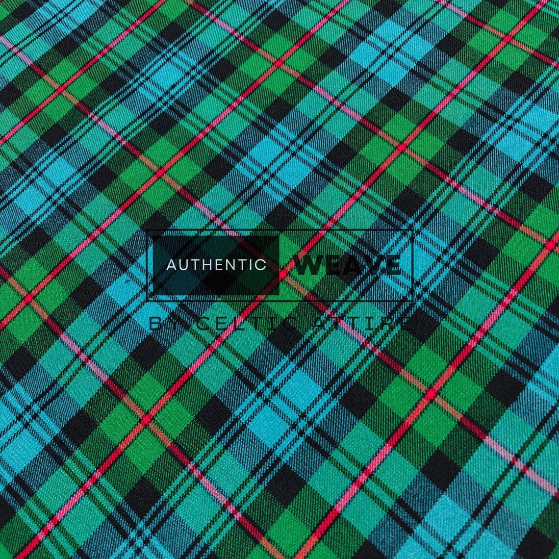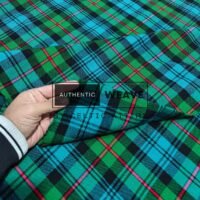MacKinlay Ancient Tartan is a bright green-based tartan with shades of light green and a red overcheck. Woven using the finest acrylic yarn, this tartan is available for kilt making, upholstery, tartan craft or any creative projects.