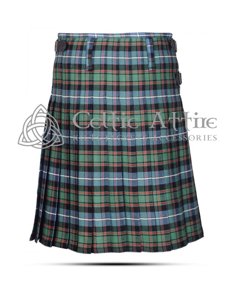 The MacRae Ancient Tartan Kilt is a stunning embodiment of Scottish tradition and craftsmanship. Made from high-quality acrylic fabric, this kilt combines comfort with durability. The tartan features a unique pattern that tells a story of heritage and pride. Each MacRae Tartan Kilt is tailored for a perfect fit. It is available in various waist sizes, ensuring that everyone can enjoy its elegance. The kilt’s design includes deep pleats, providing a classic look while allowing for freedom of movement.