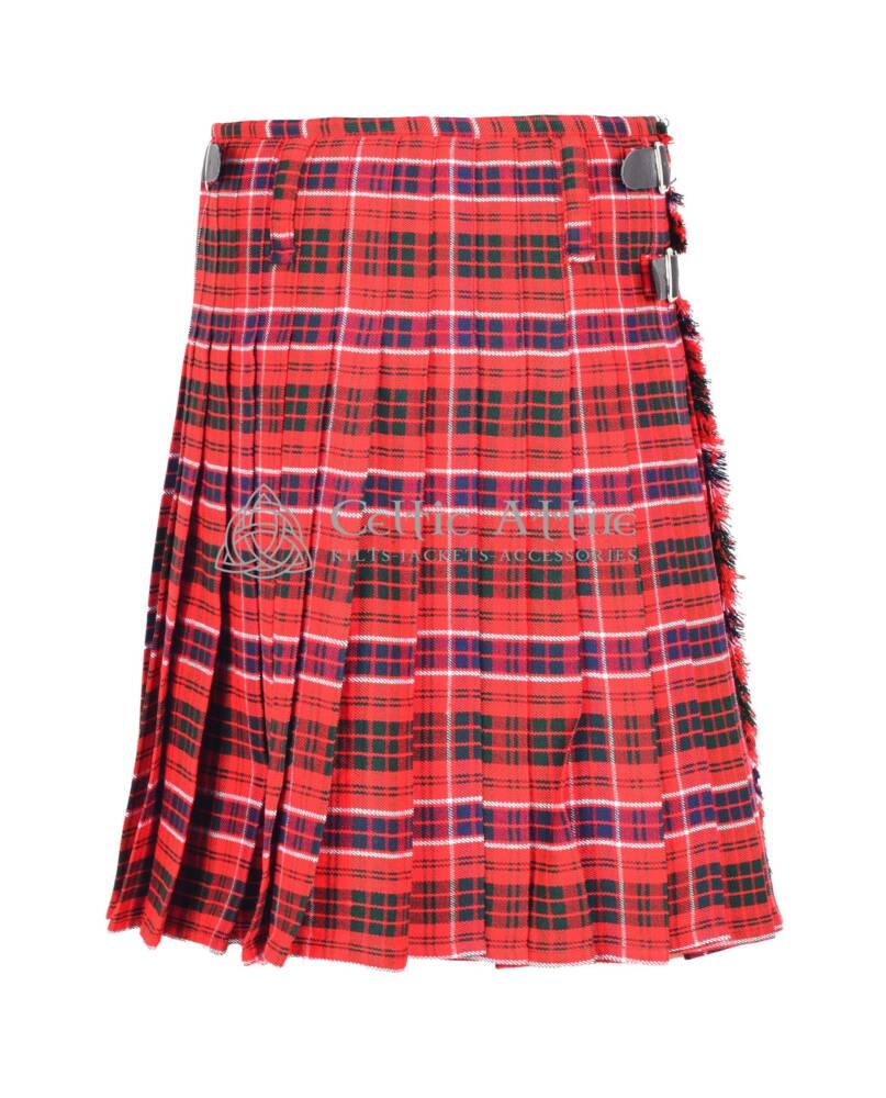 Woven from 100% premium wool, this kilt showcases the vibrant red-based MacRae tartan, symbolizing strength, courage, and deep clan pride.