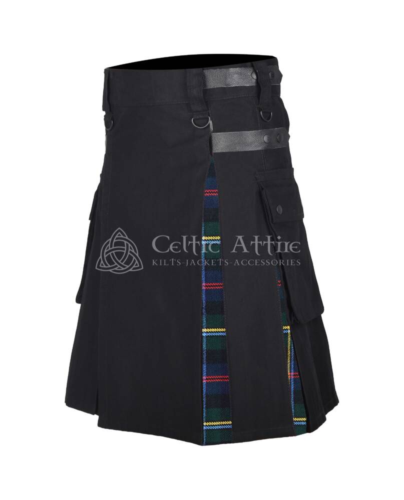 Malcolm Tartan Black Cotton Hybrid Utility Kilt