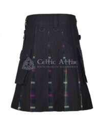 The pleated tartan back maintains a classic silhouette, while the solid cotton front brings a modern, rugged edge to your look. Carefully stitched for strength and durability, this kilt is ready to handle your busiest days while keeping you comfortable and stylish.